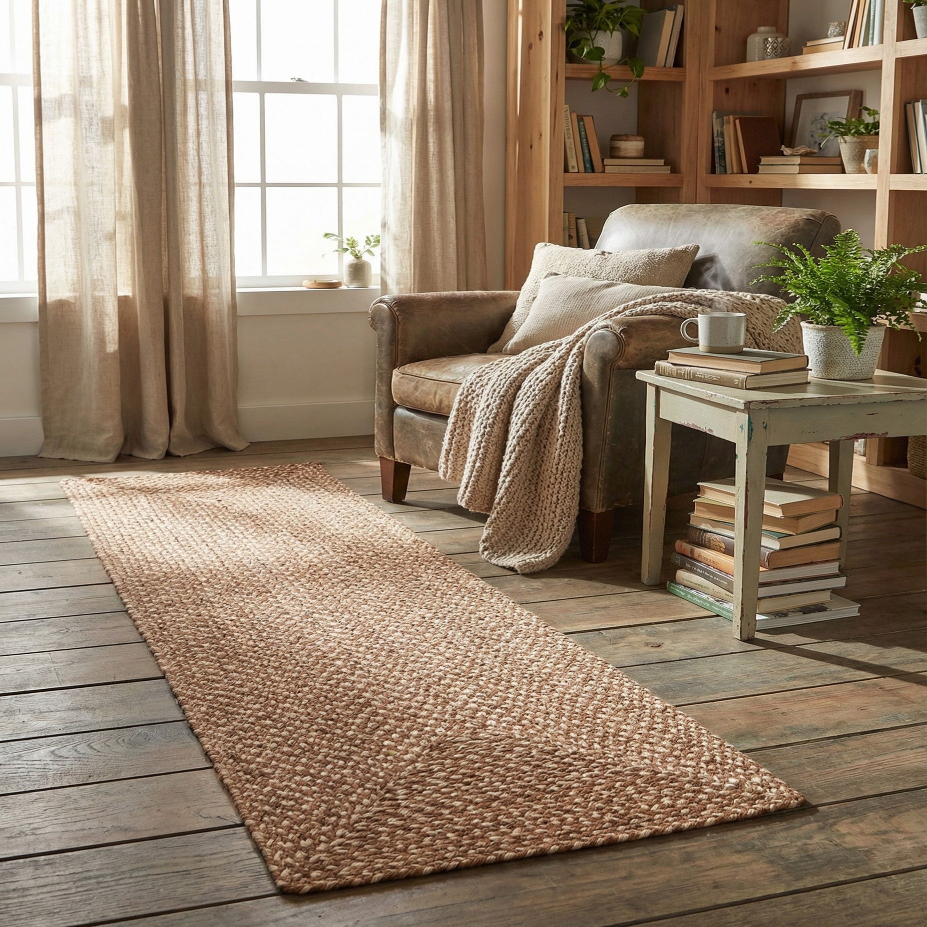 Detail image of 2' x 4' 1  Hand Tweed Braided Jute Runner Rug