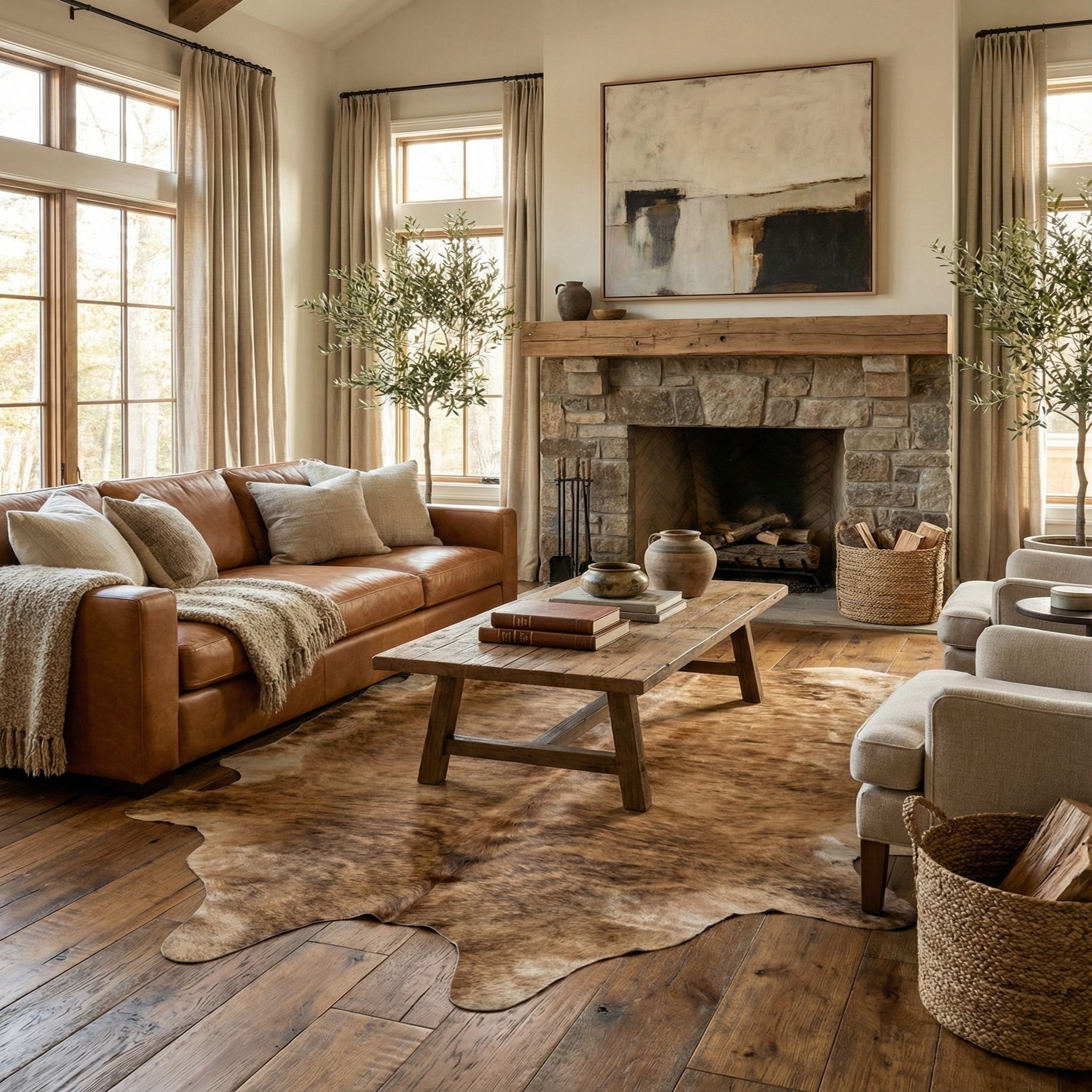 4' 1 x 4' 4 Cowhide Leather Square Rug