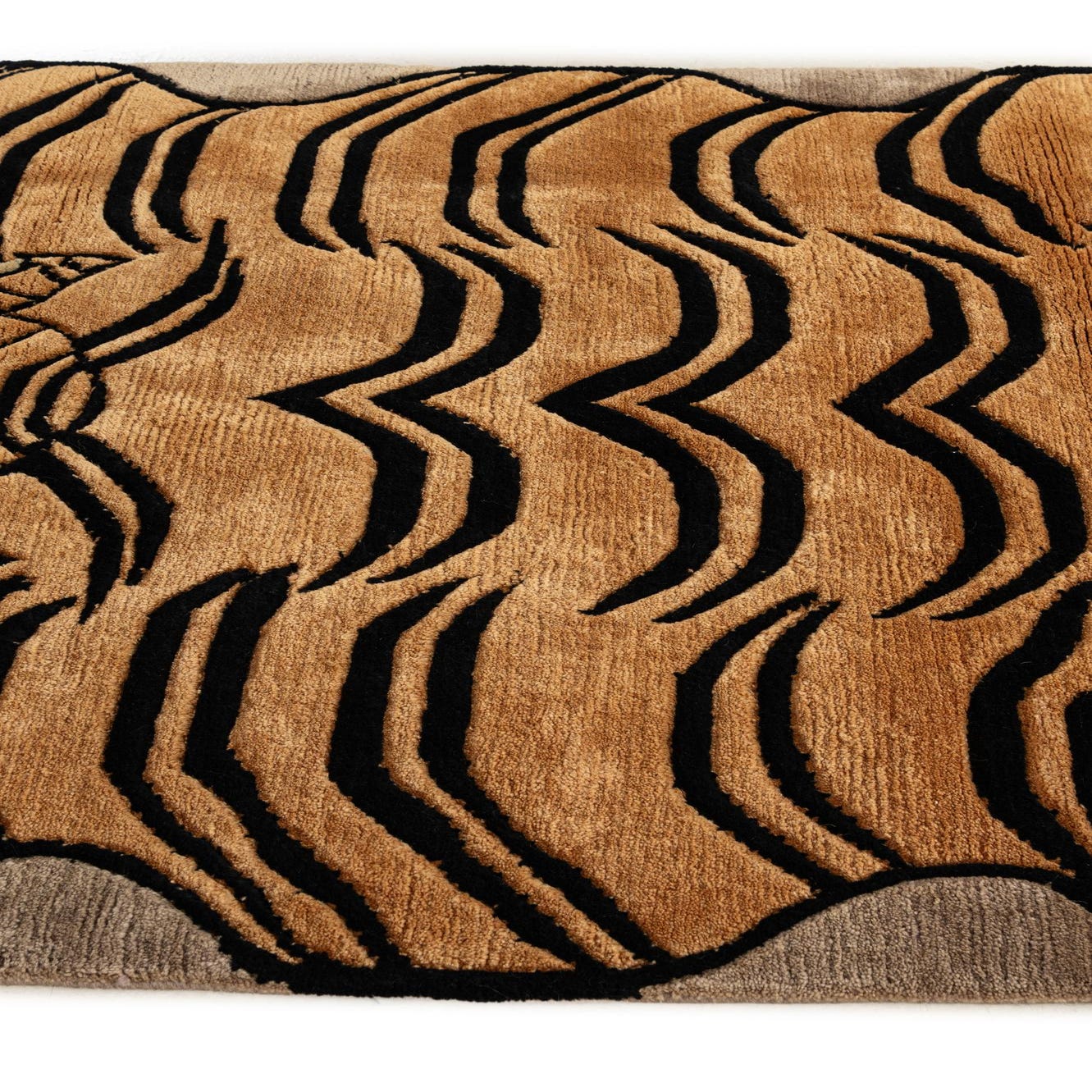 Primary color is Light Brown. Colors in this rug include: Light Brown, Black, Green.