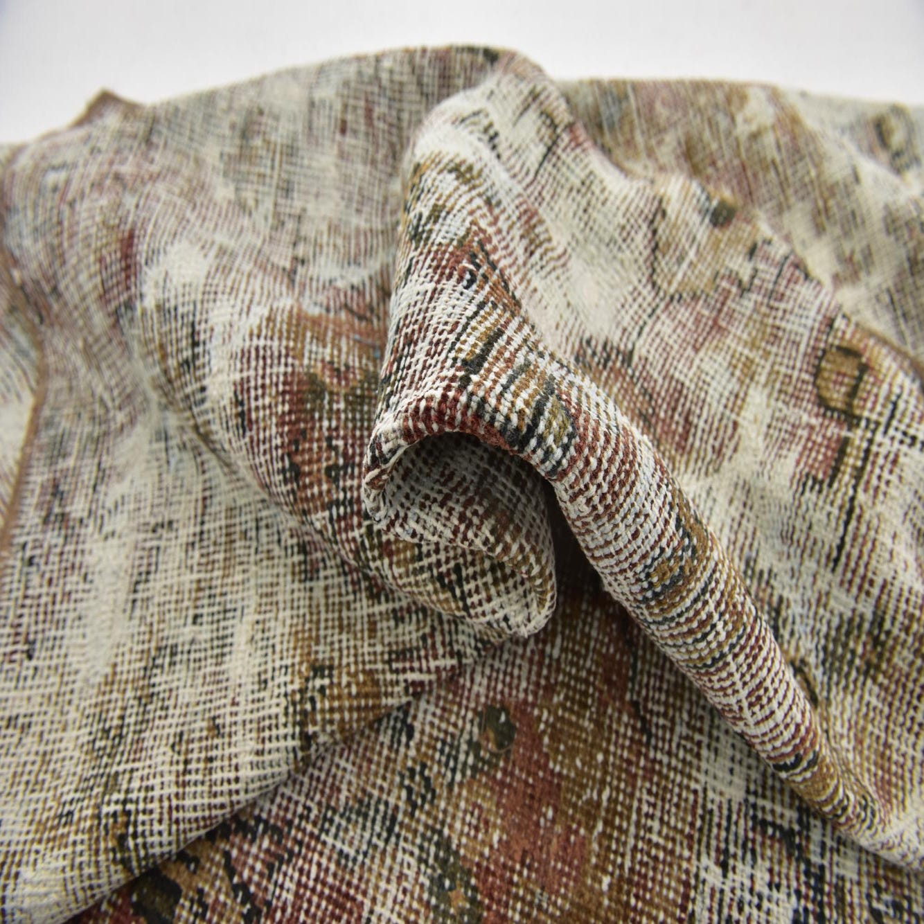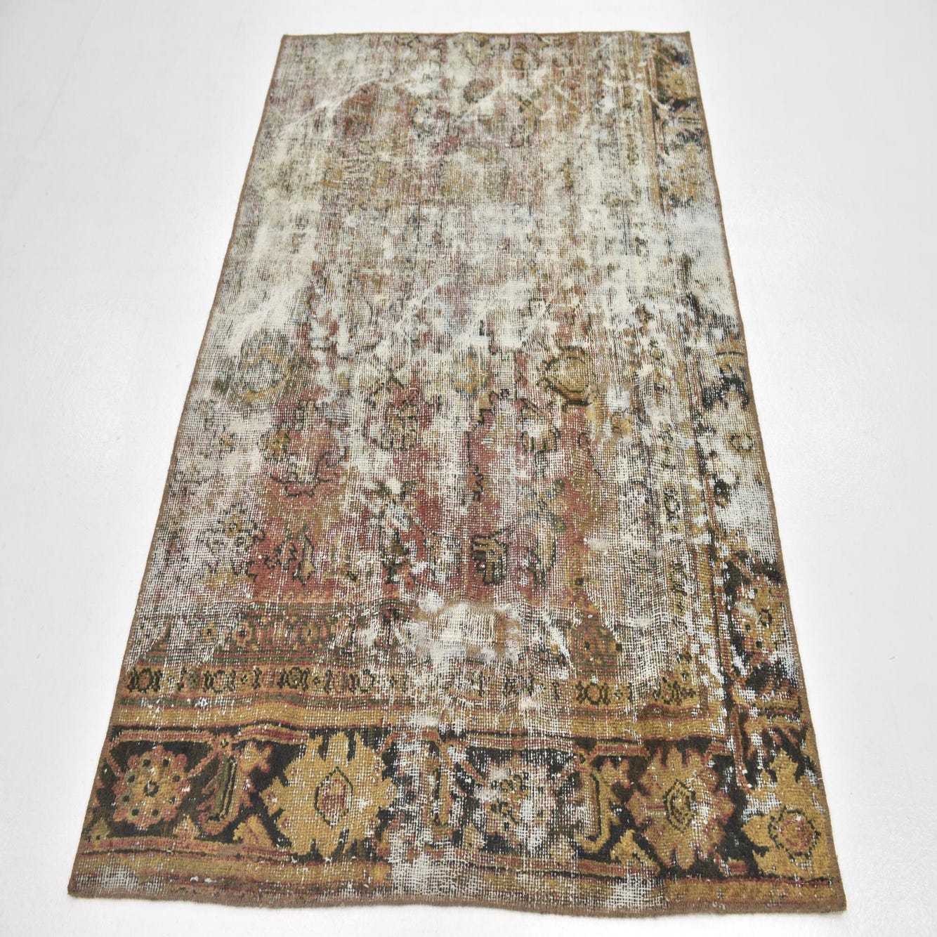 This Persian Ultra Vintage rug is an antique Persian Rug that has been washed, over-dyed, and then shaved down to a low pile. Look at the detail pictures to fully appreciate the uniqueness of this piece.