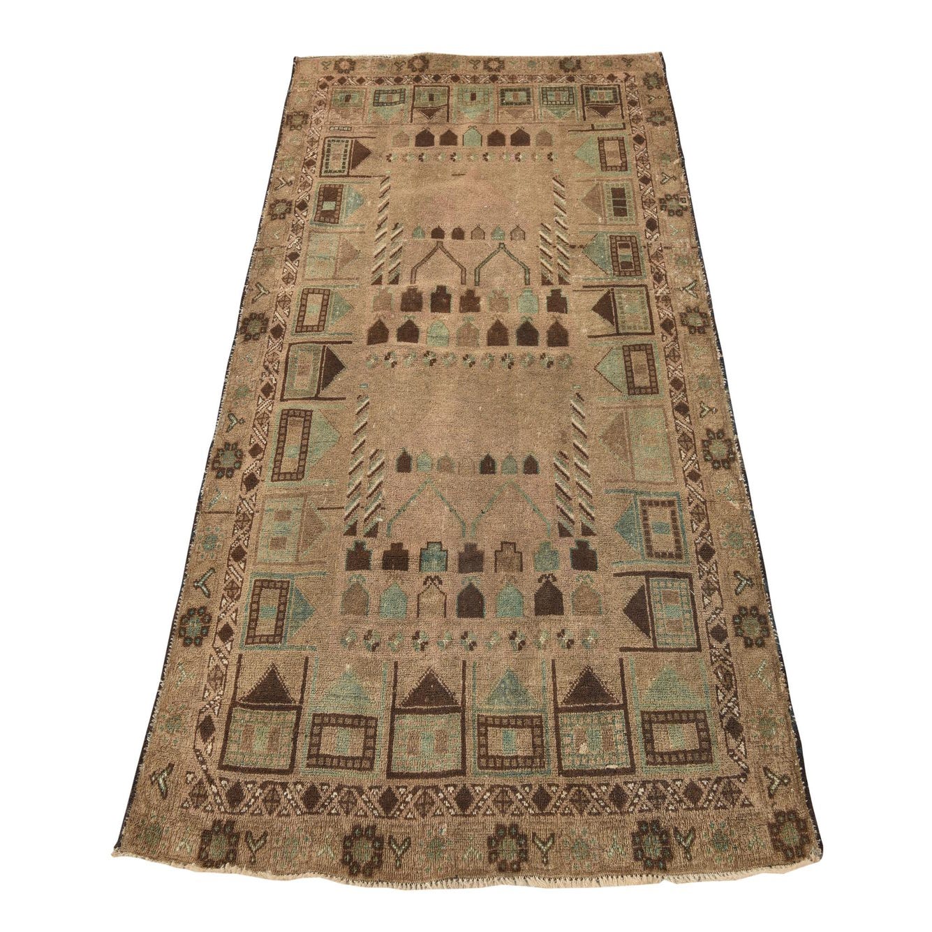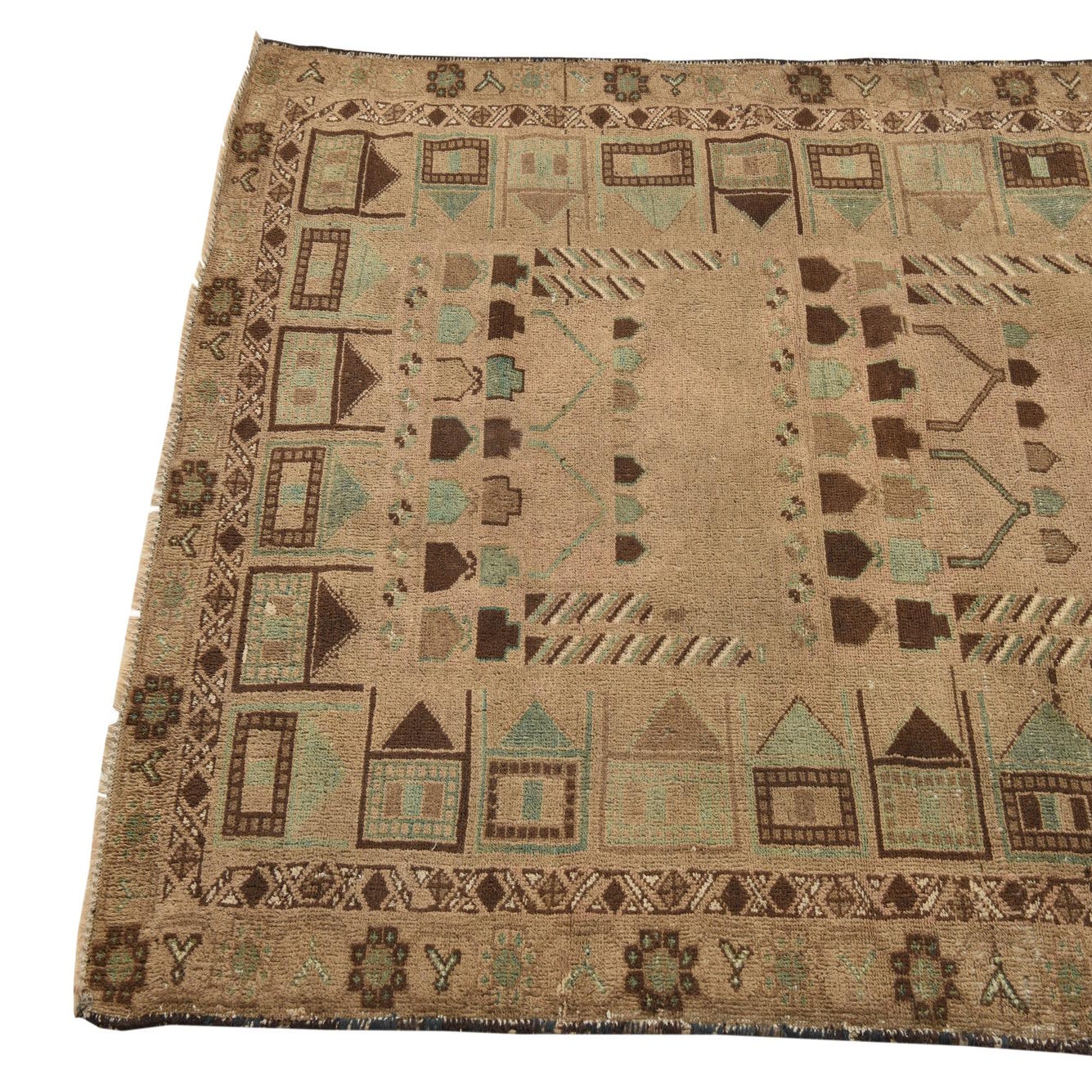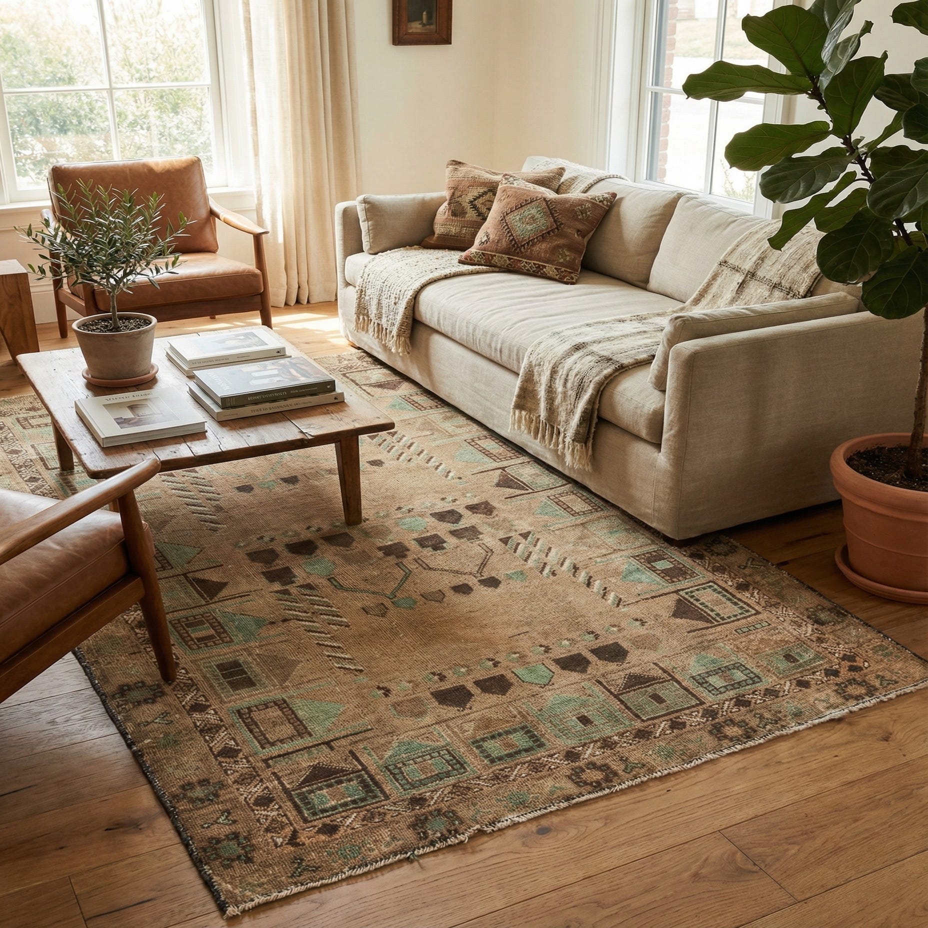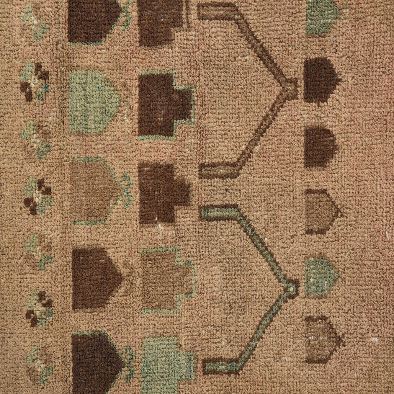 Primary color is Light Brown. Colors in this rug include: Light Brown, Brown, Green.