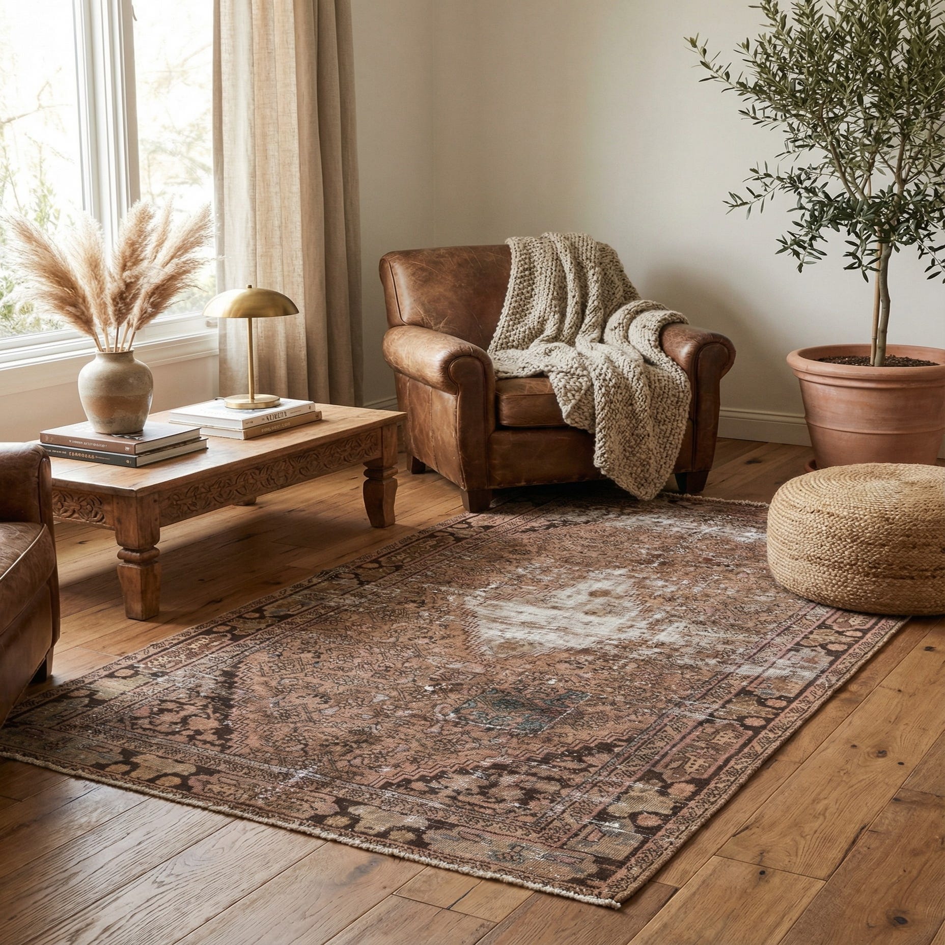 Primary color is Light Brown. Colors in this rug include: Light Brown, Beige, Brown, Ivory, Rust Red.