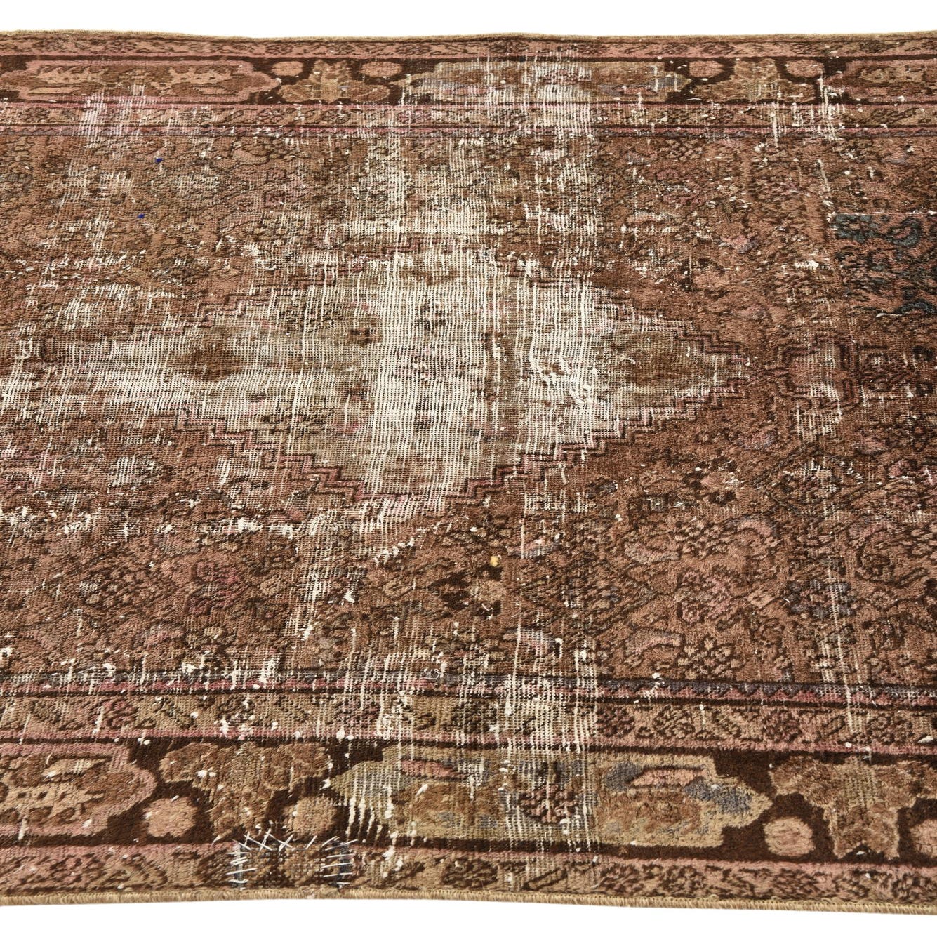This Persian Ultra Vintage rug is an antique Persian Rug that has been washed, over-dyed, and then shaved down to a low pile. Look at the detail pictures to fully appreciate the uniqueness of this piece.