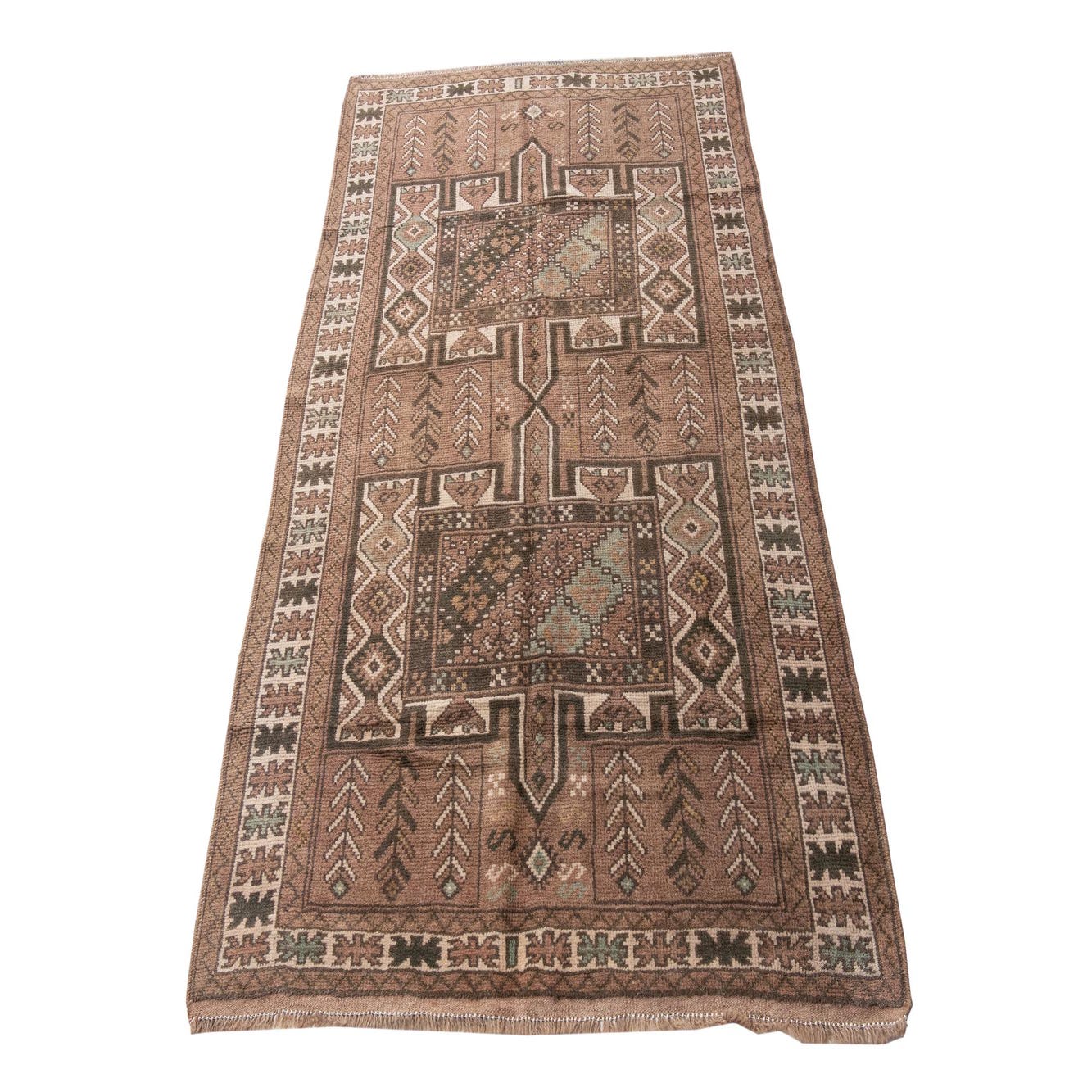 Primary color is Light Brown. Colors in this rug include: Light Brown, Brown, Green, Ivory.