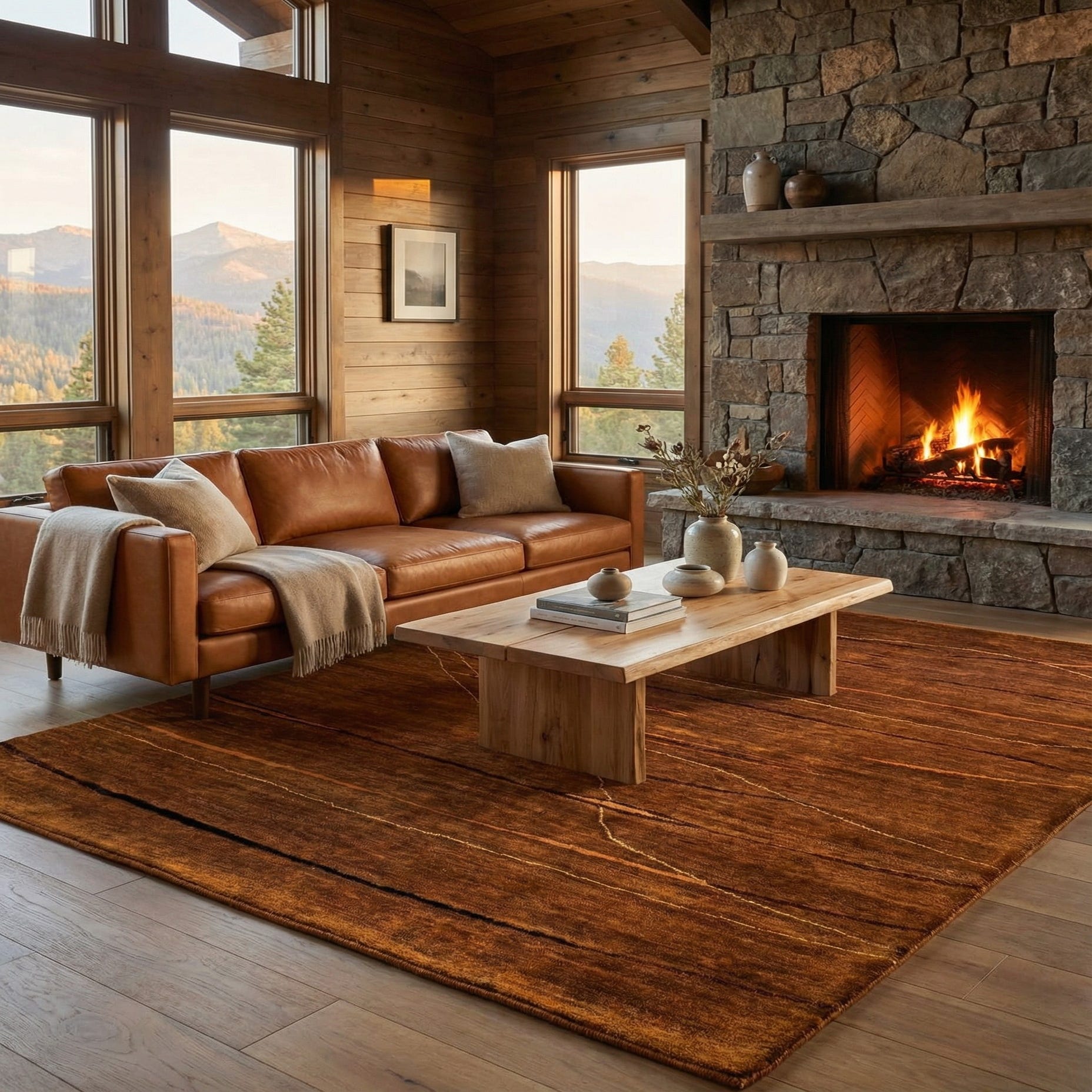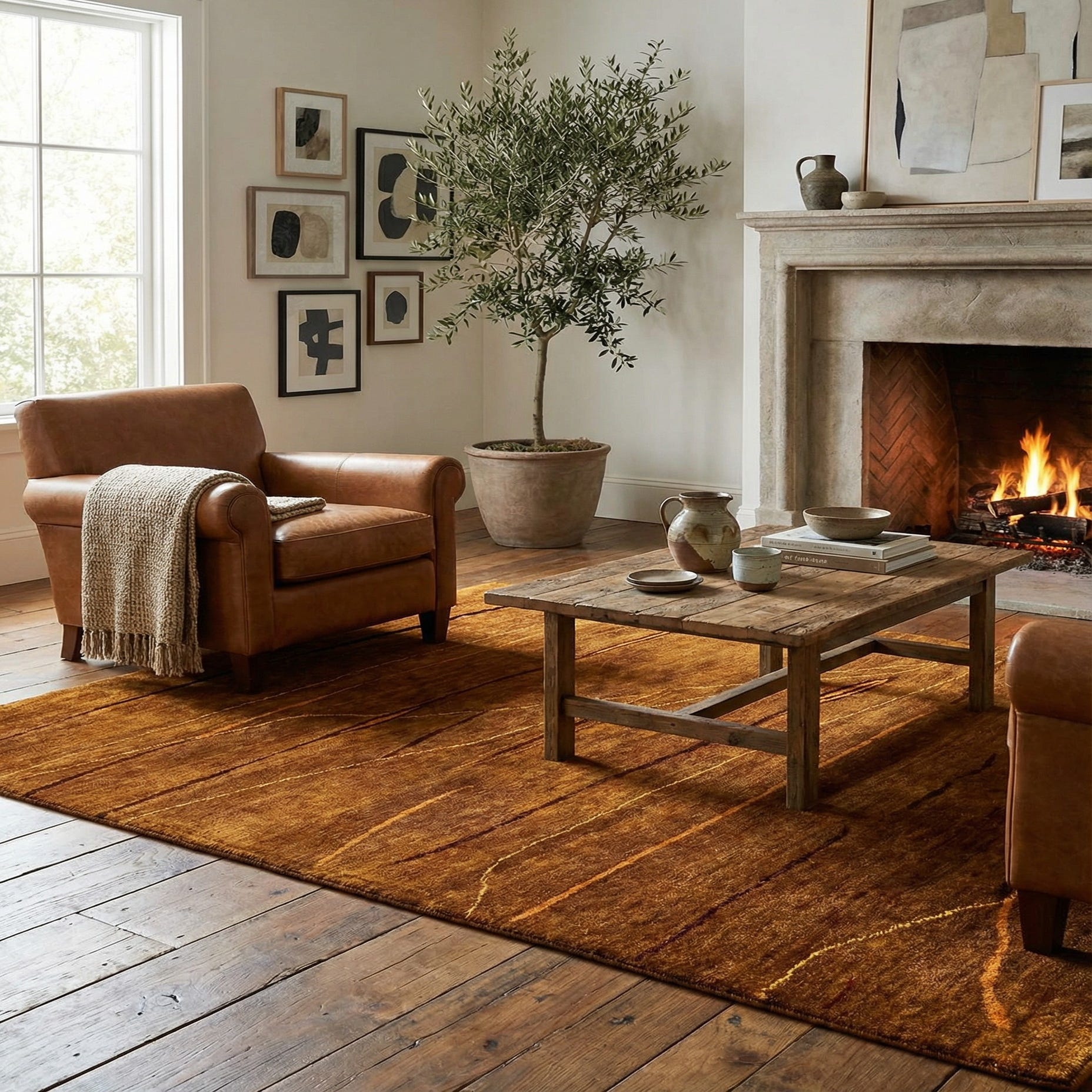 Primary color is Light Brown. Colors in this rug include: Light Brown, Orange, Yellow, Brown.