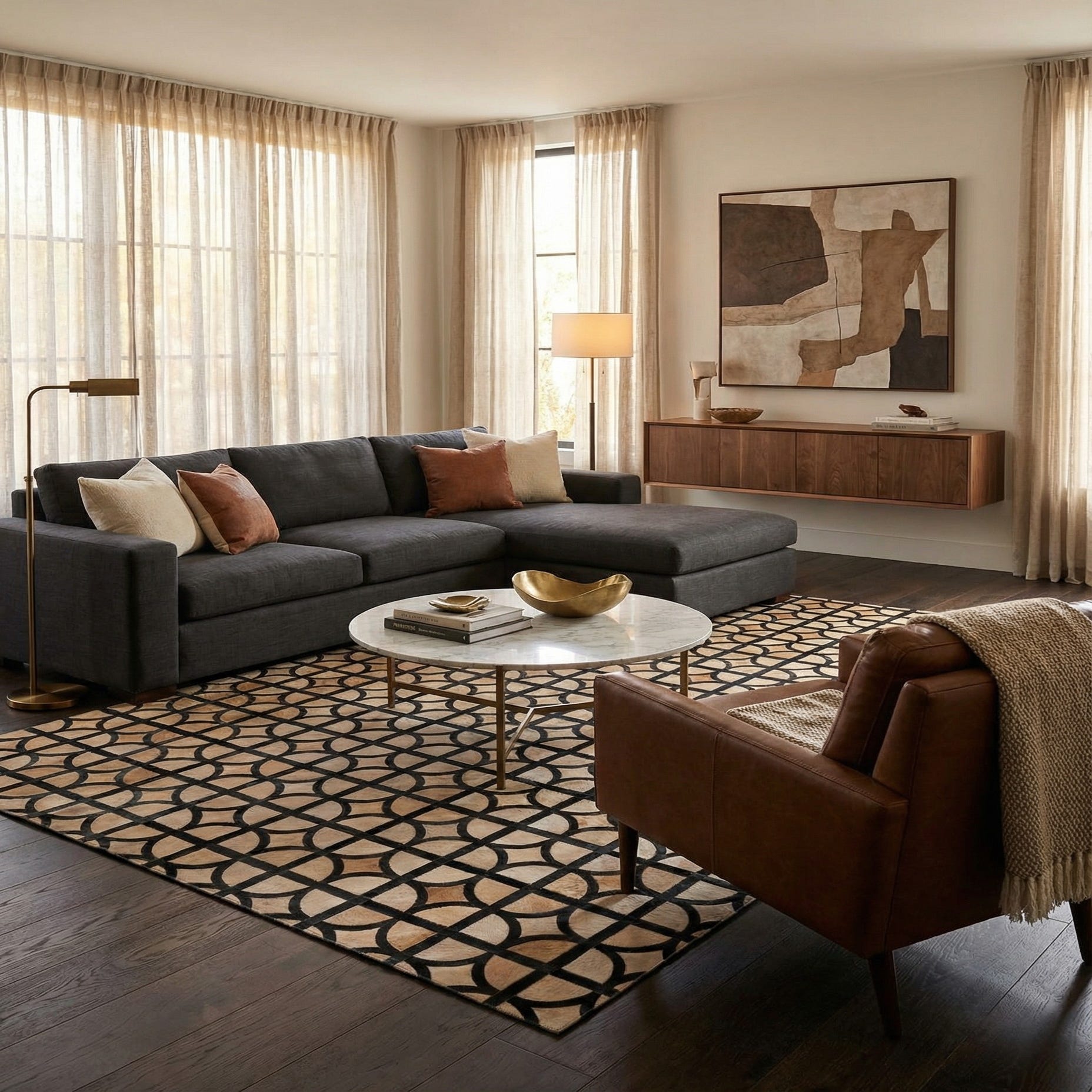 Detail image of 5' 1 x 8' Cowhide Leather Rug