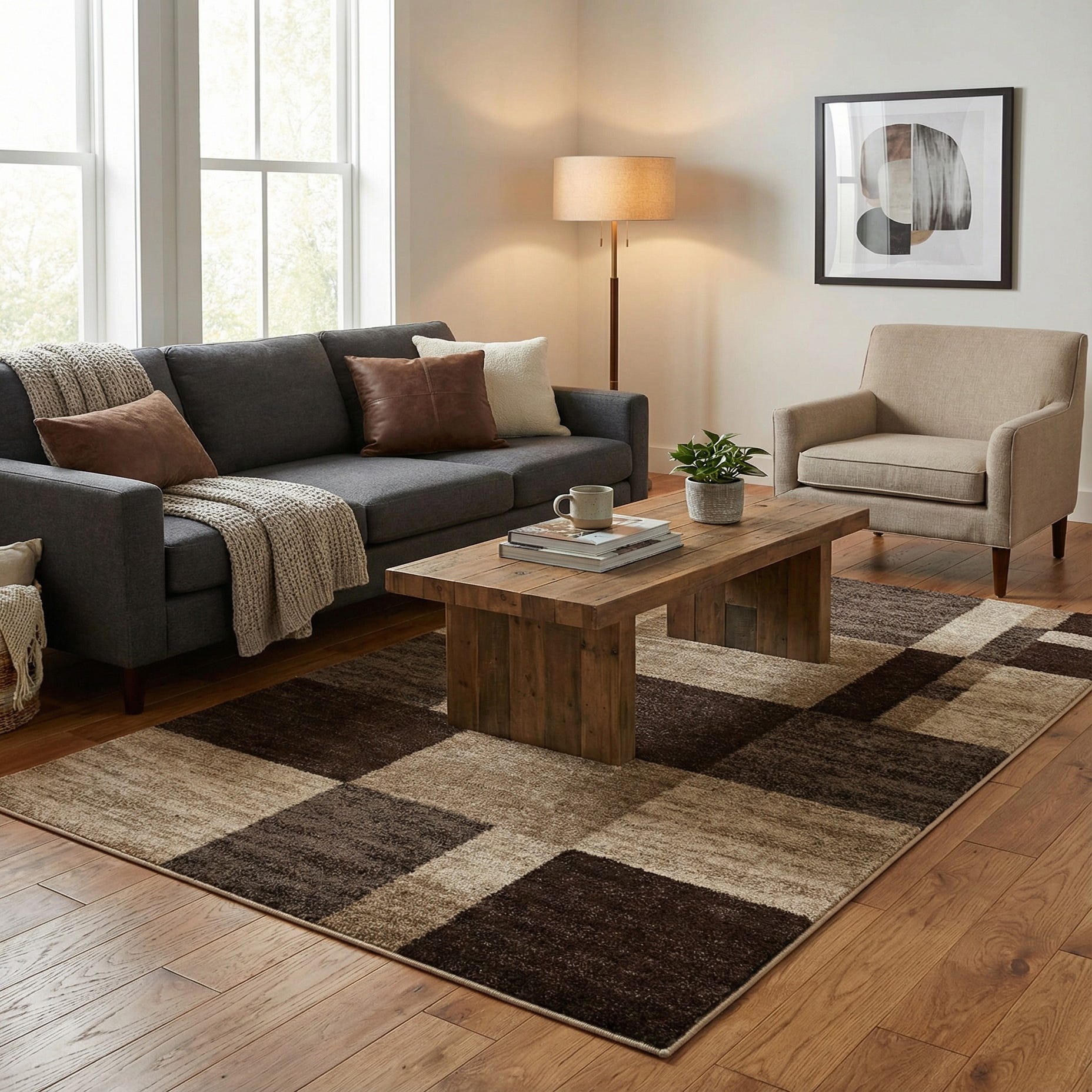Primary color is Light Brown. Colors in this rug include: Light Brown, Beige.