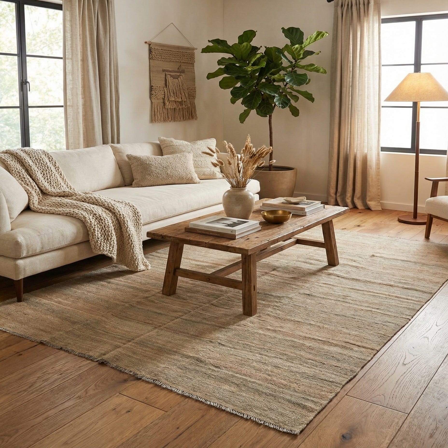 Primary color is Light Brown. Colors in this rug include: Light Brown, Beige.