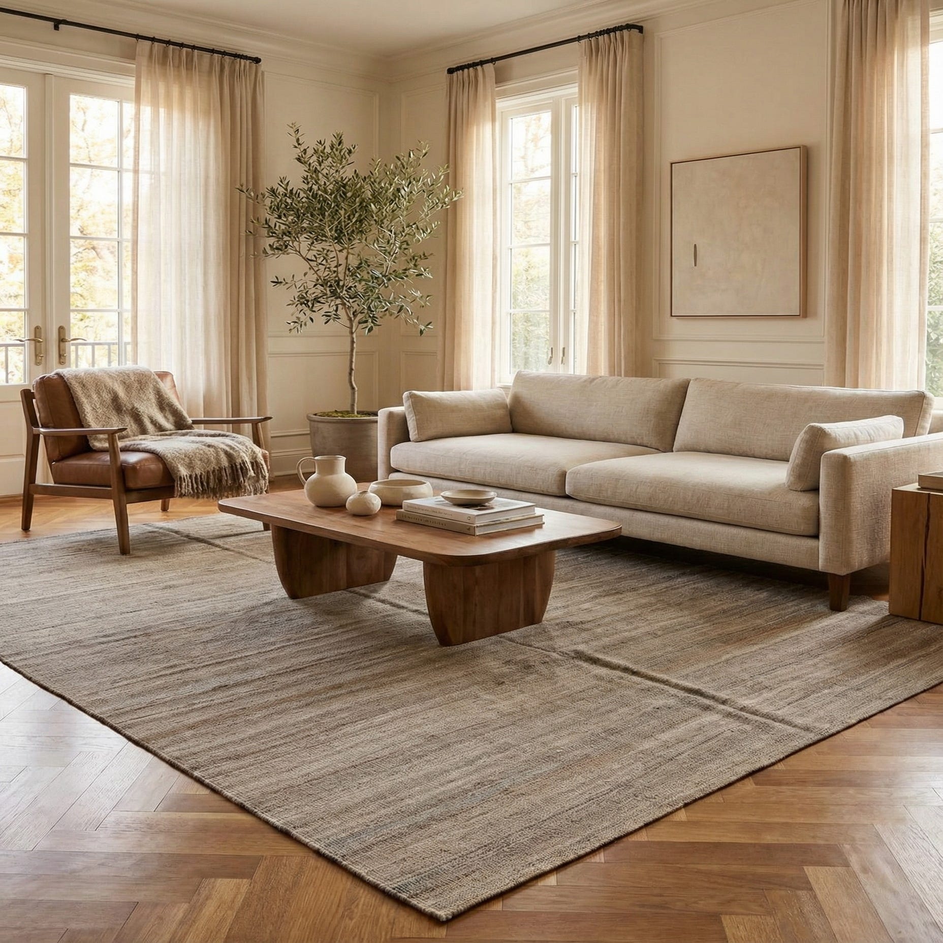 Primary color is Light Brown. Colors in this rug include: Light Brown, Brown, Beige.