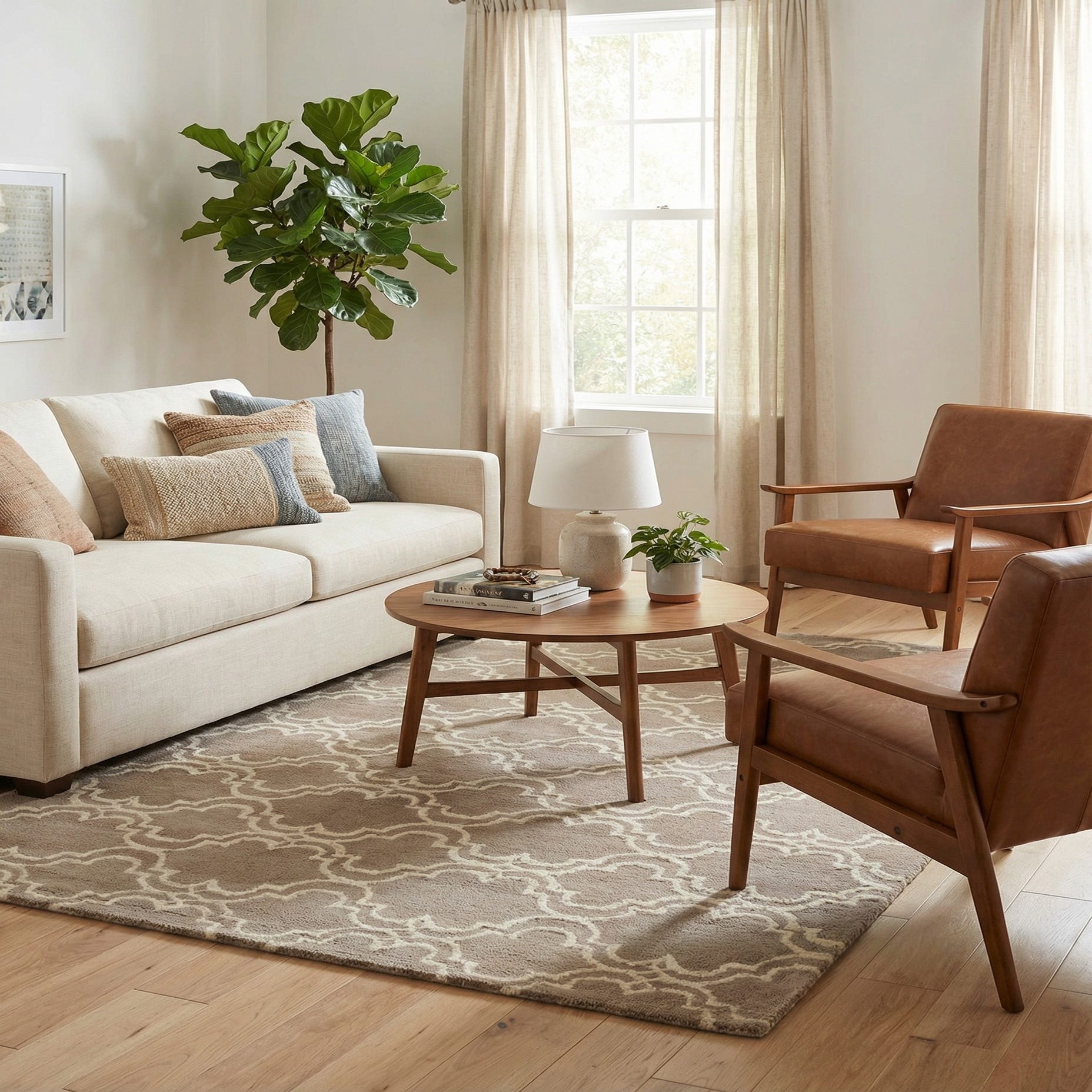 Primary color is Light Brown. Colors in this rug include: Light Brown, Ivory.