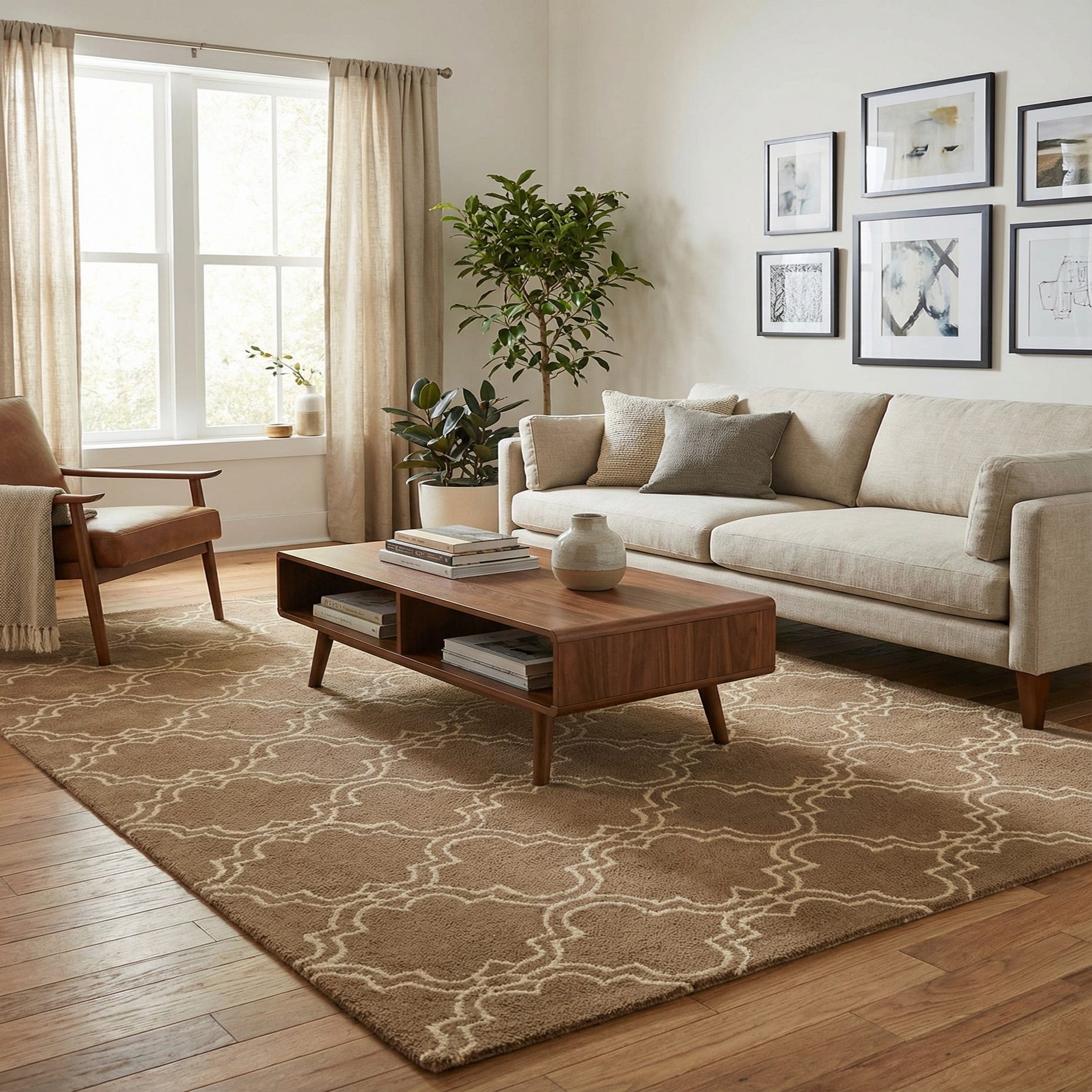 Primary color is Light Brown. Colors in this rug include: Light Brown, Ivory.