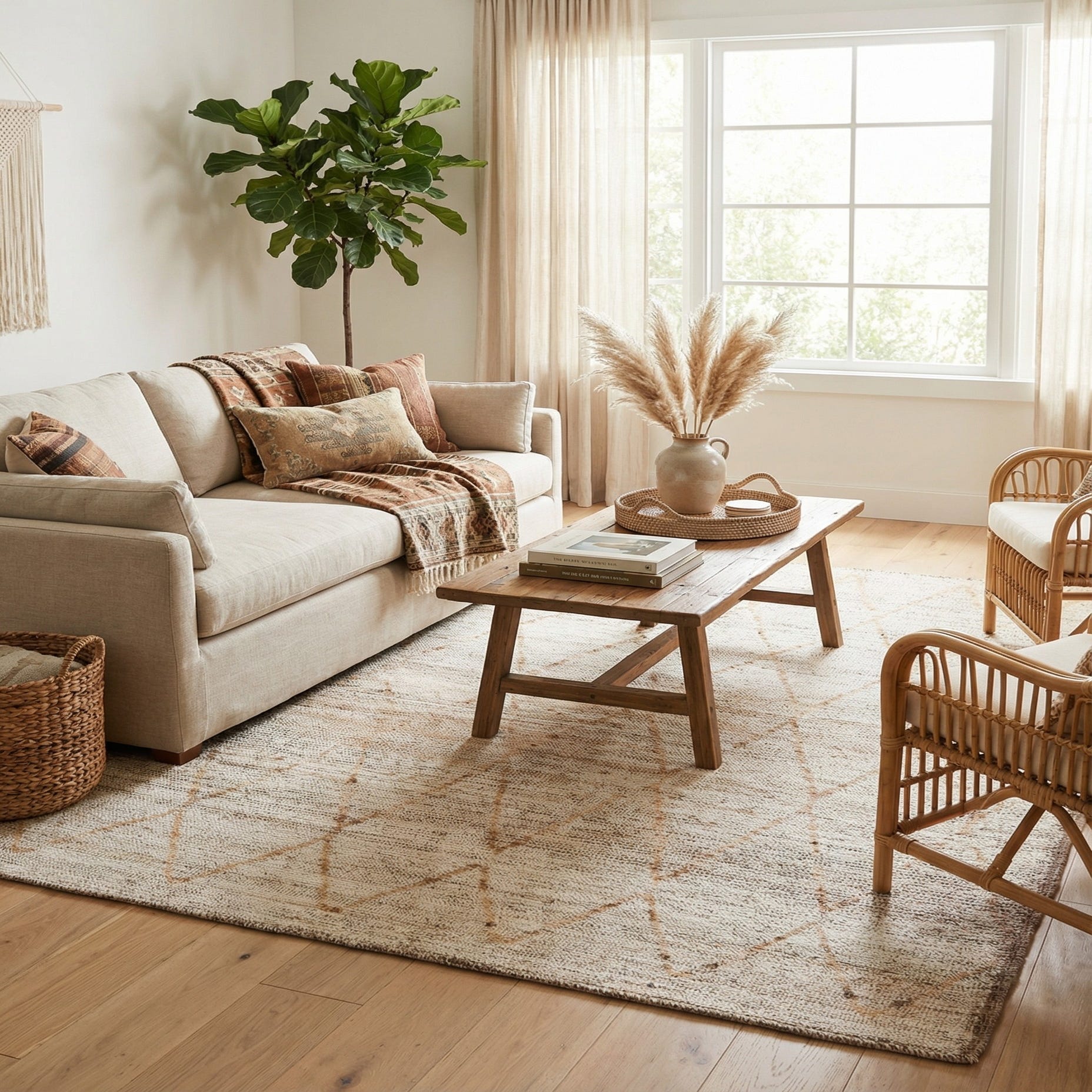 Primary color is Light Brown. Colors in this rug include: Light Brown, Brown, Beige.
