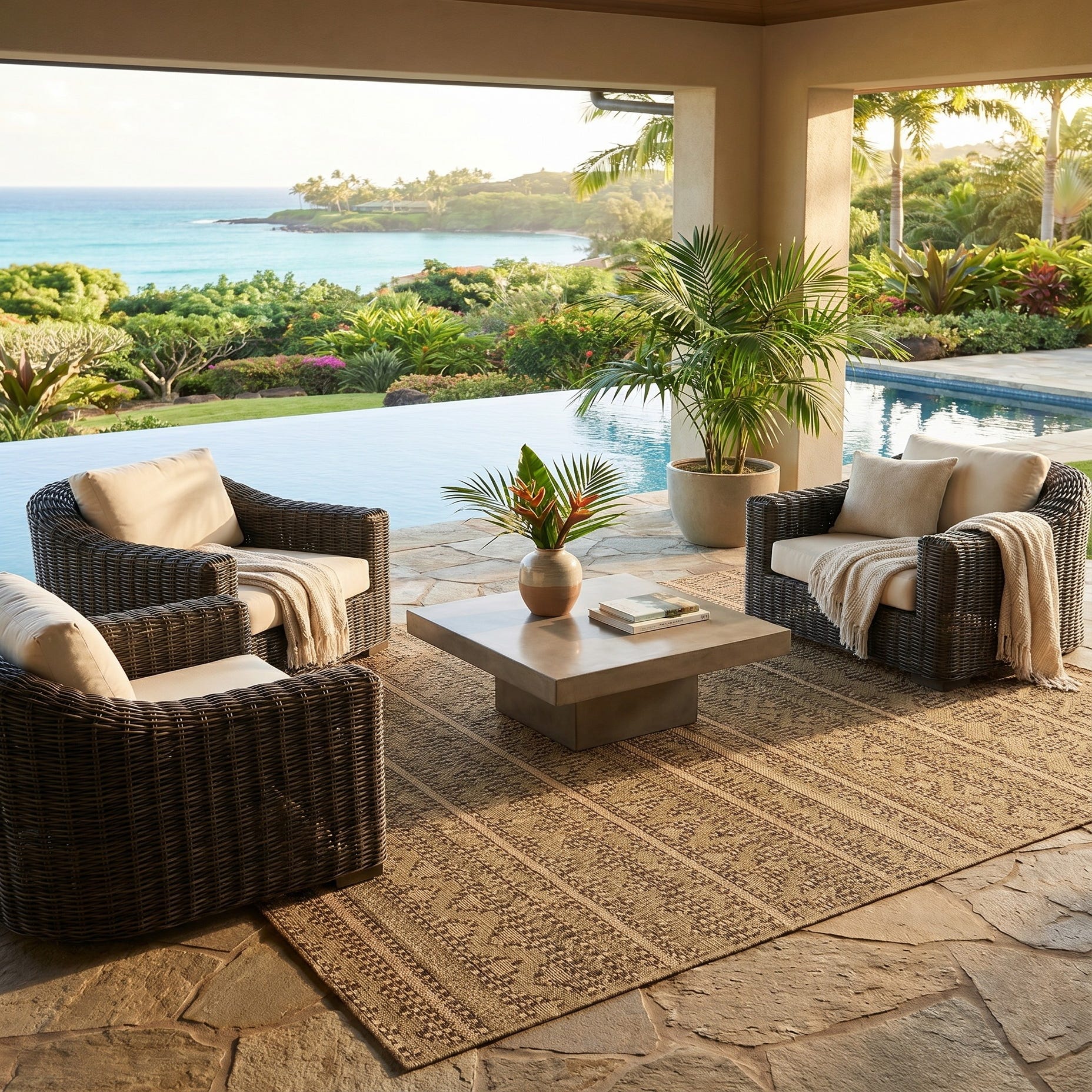 • Natural rattan patio lounge set