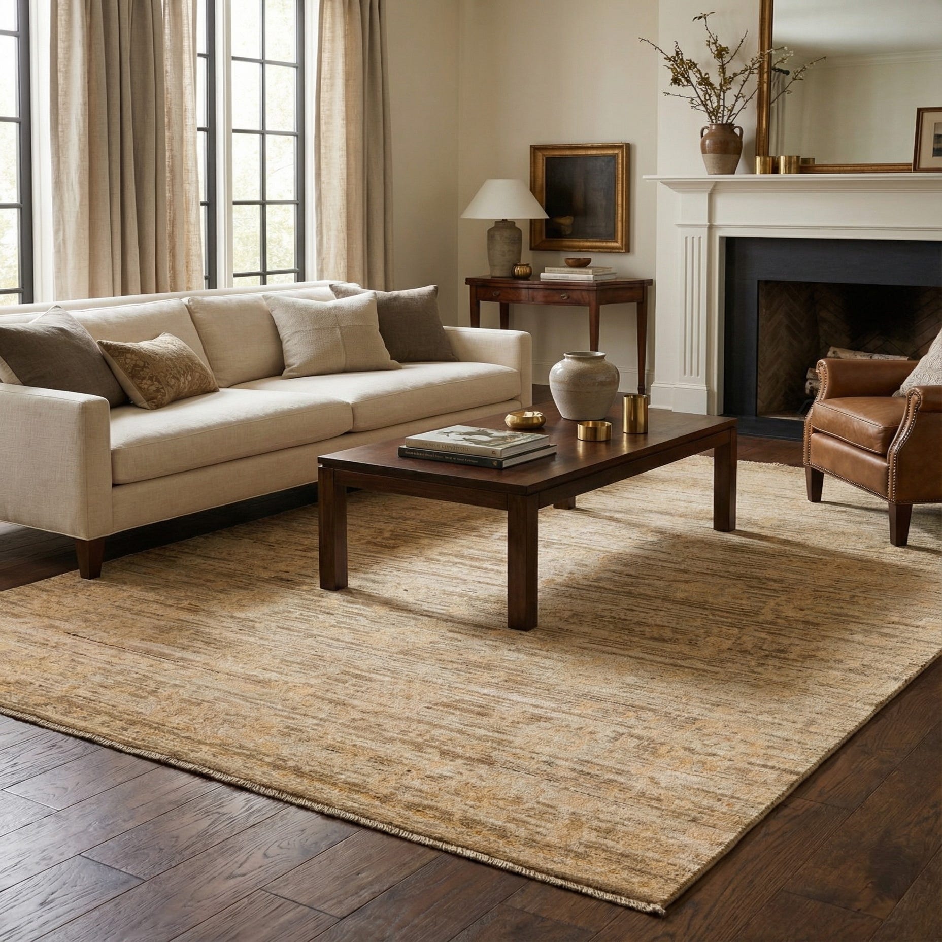 Primary color is Light Brown. Colors in this rug include: Light Brown, Beige, Ivory.