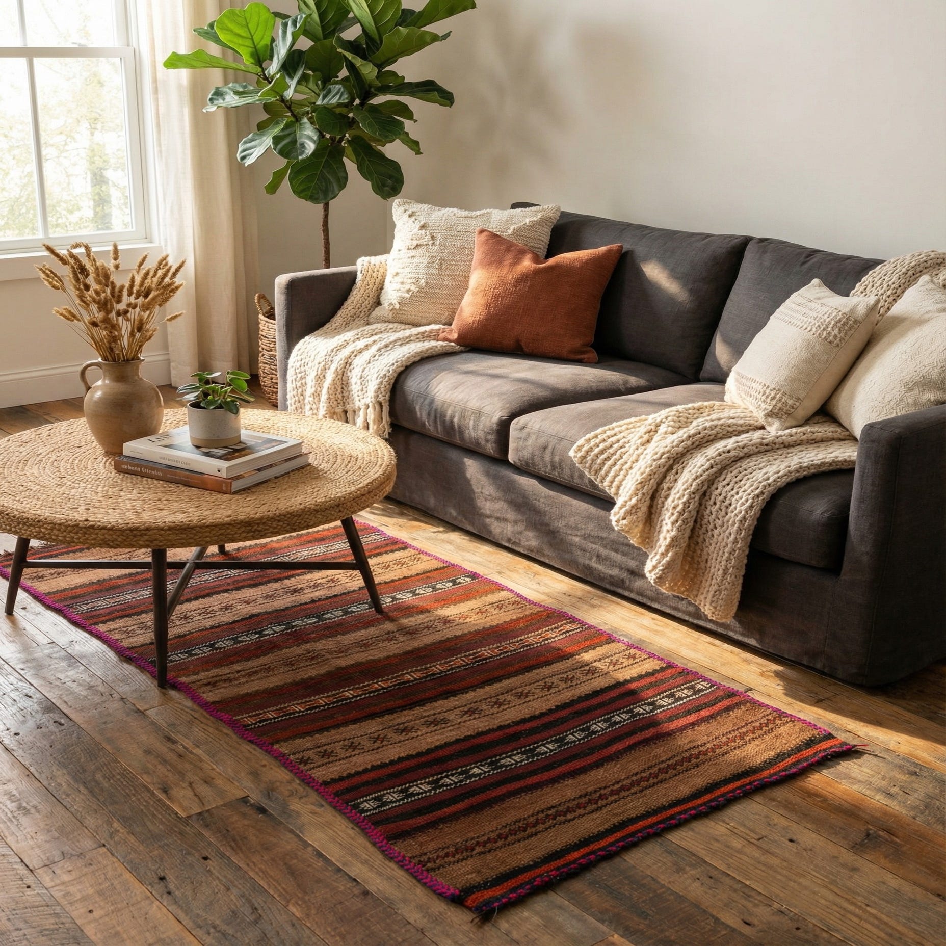 2' 8 x 6' Hand Woven Kilim Modern Wool Runner Rug