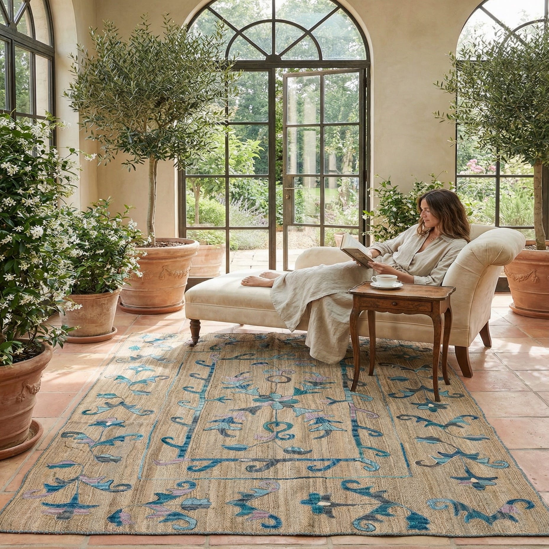 Detail image of 5' 2 x 6' 4 Kilim Suzani Wool Square Rug