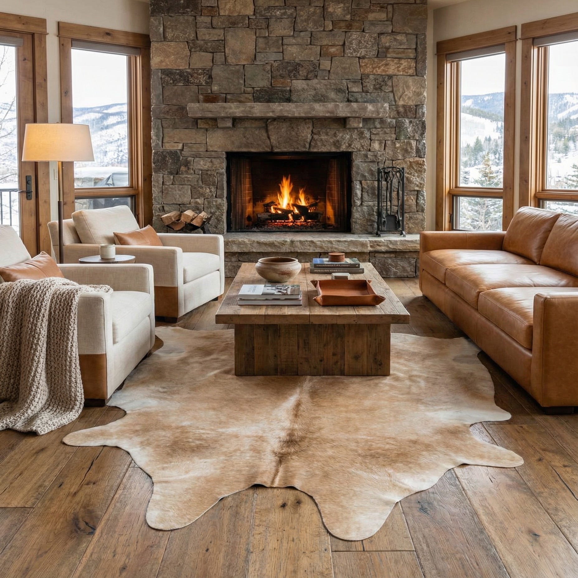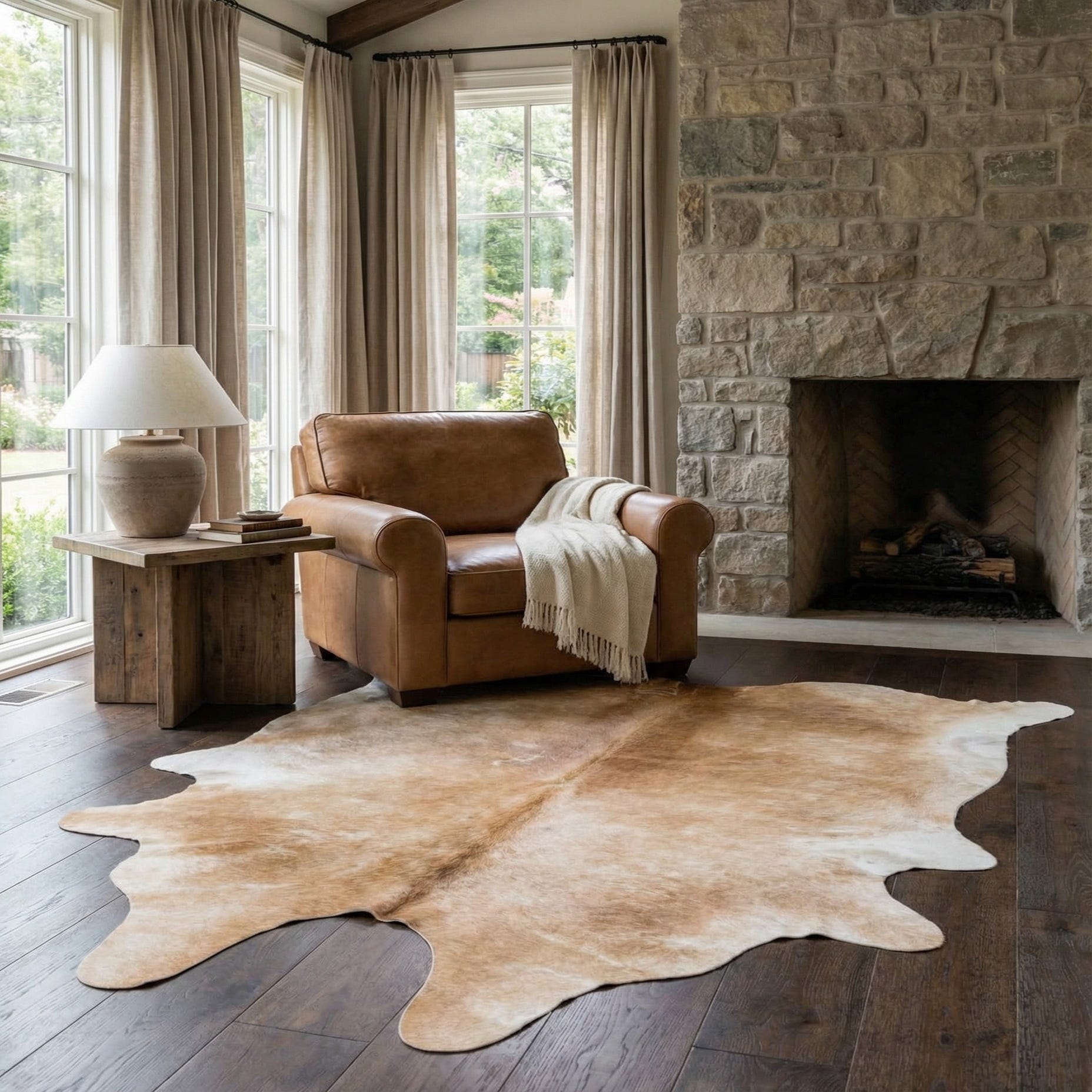 6' 3 x 6' 8 Cowhide Leather Freeform Rug