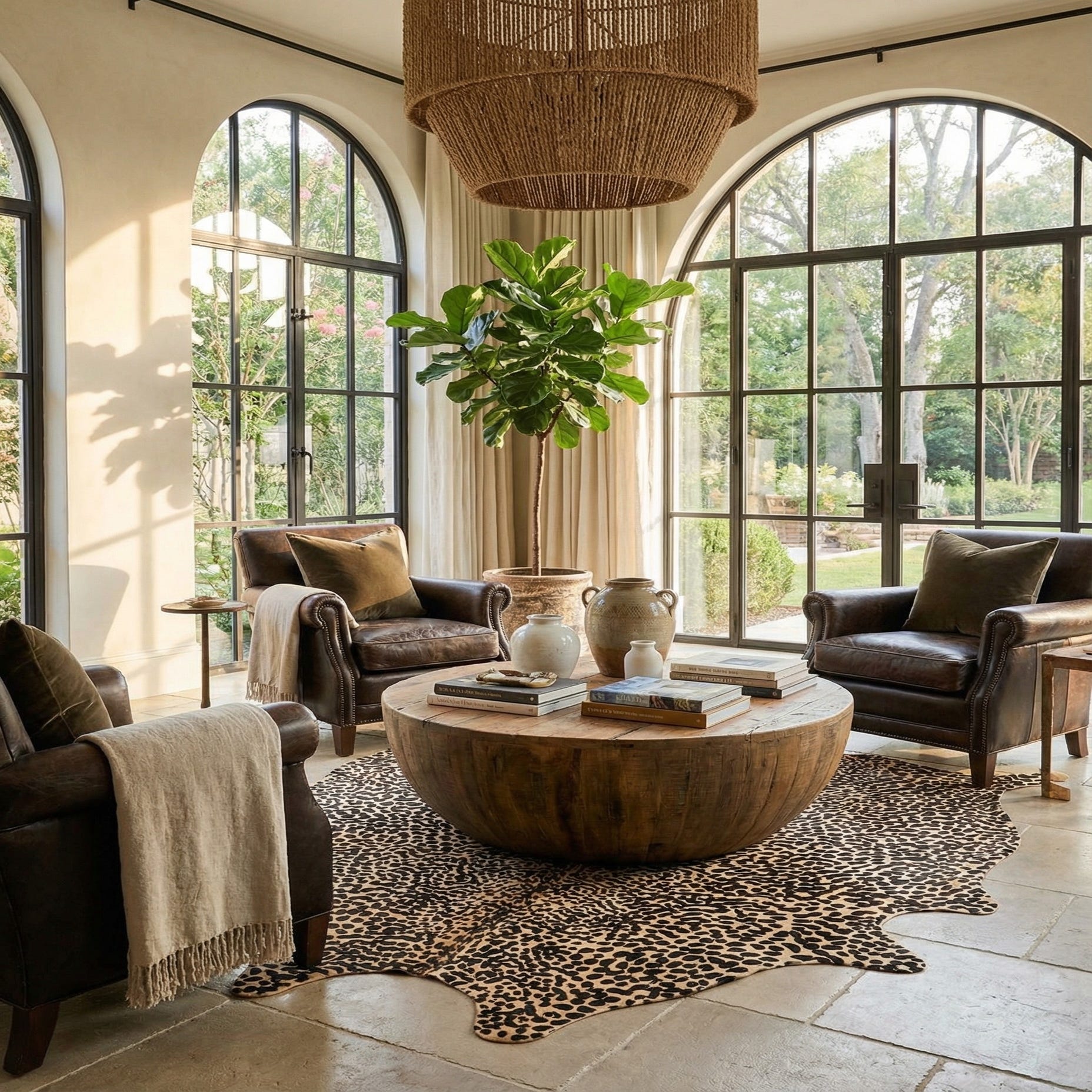 6' 3 x 7' 3 Cowhide Leather Freeform Rug