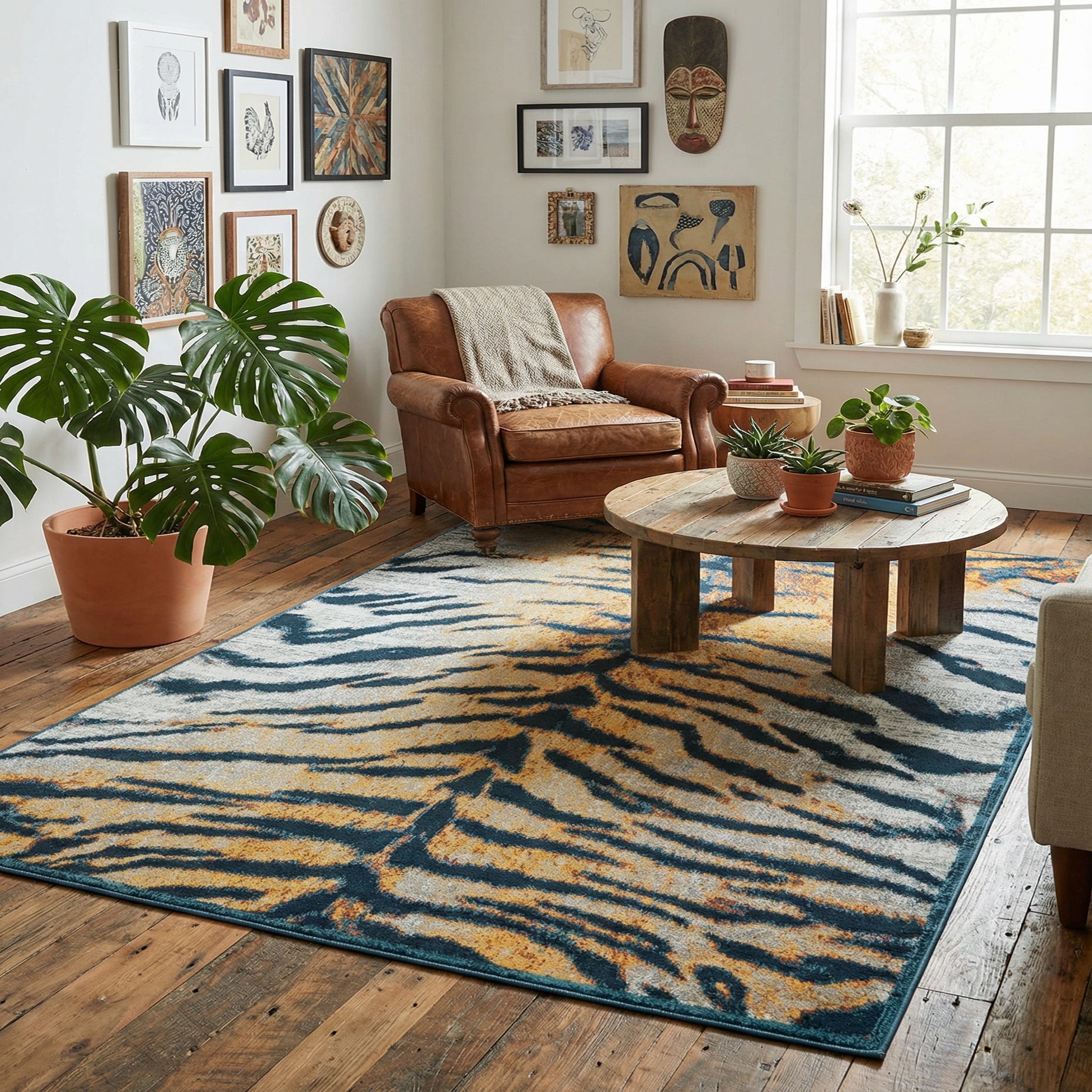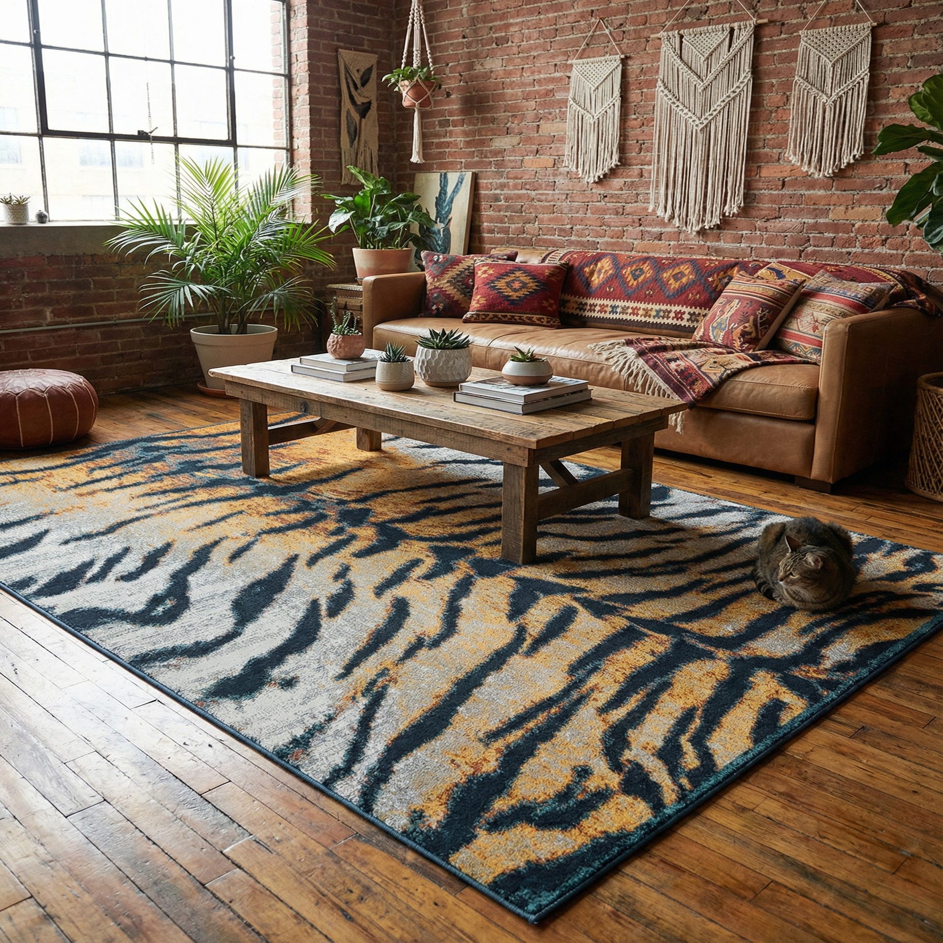 Primary color is Light Brown. Colors in this rug include: Light Brown, Black, Gray, Ivory.