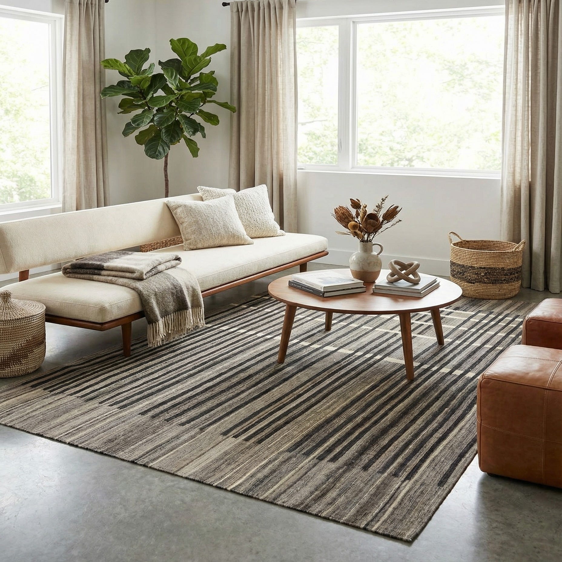 Primary color is Light Brown. Colors in this rug include: Light Brown, Brown, Cream.
