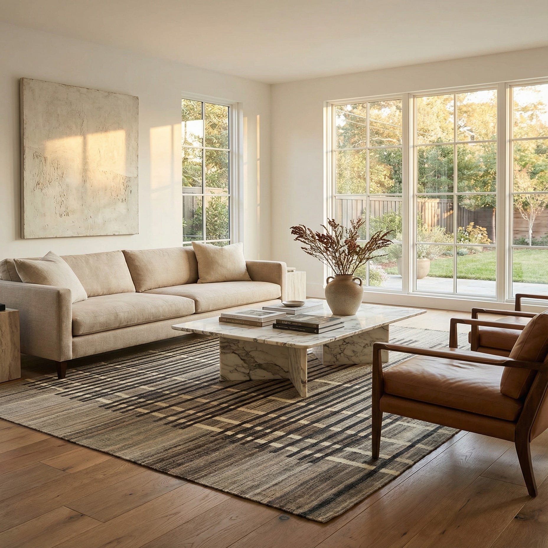 Primary color is Light Brown. Colors in this rug include: Light Brown, Brown, Cream.