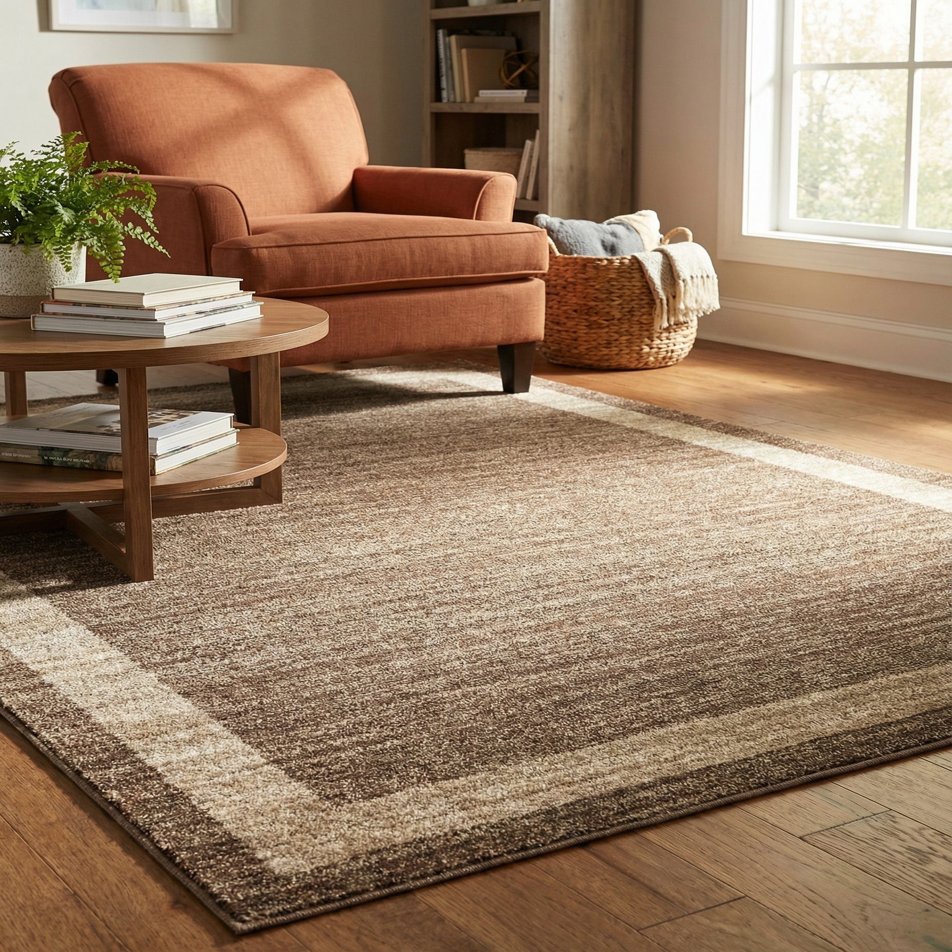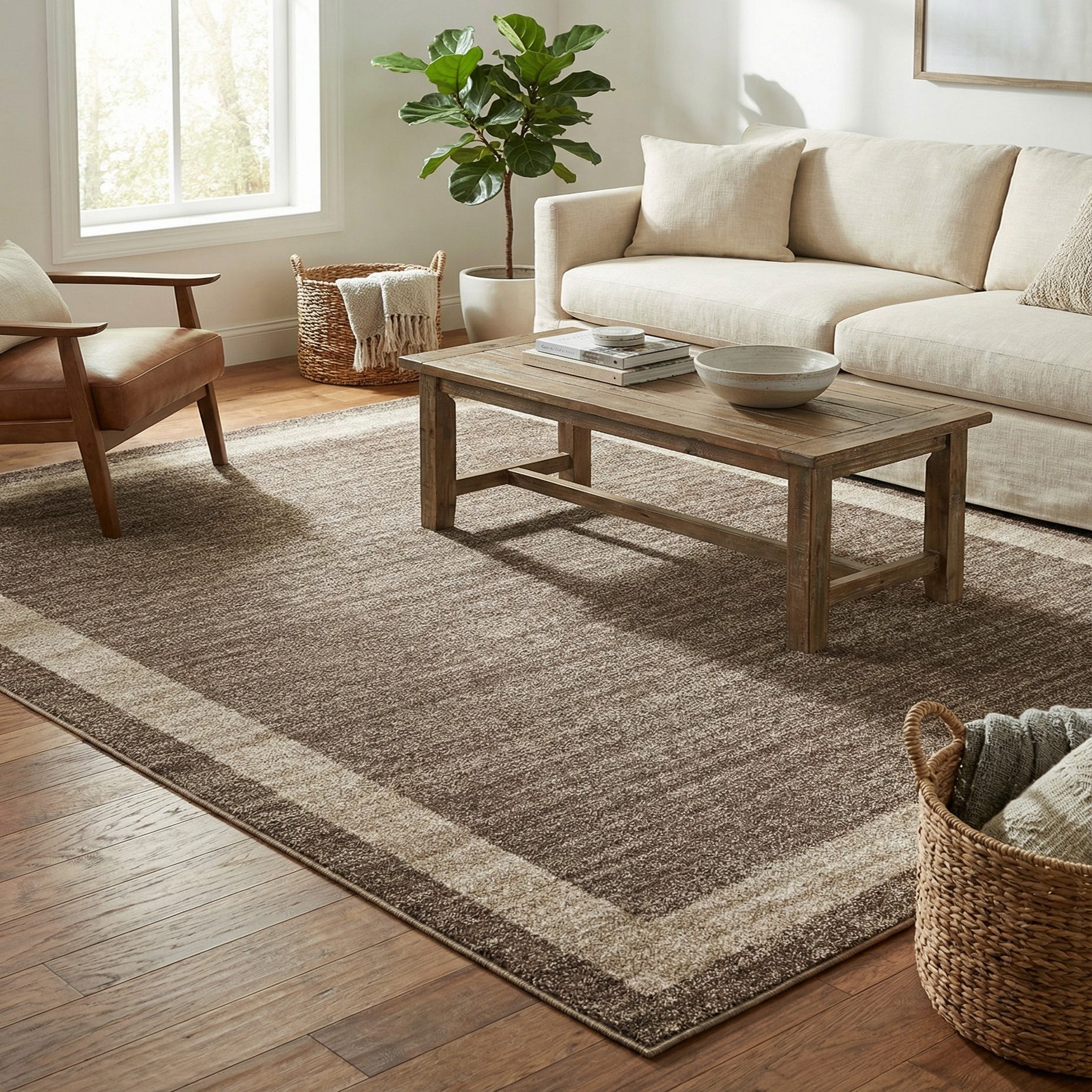 Primary color is Light Brown. Colors in this rug include: Light Brown, Ivory.