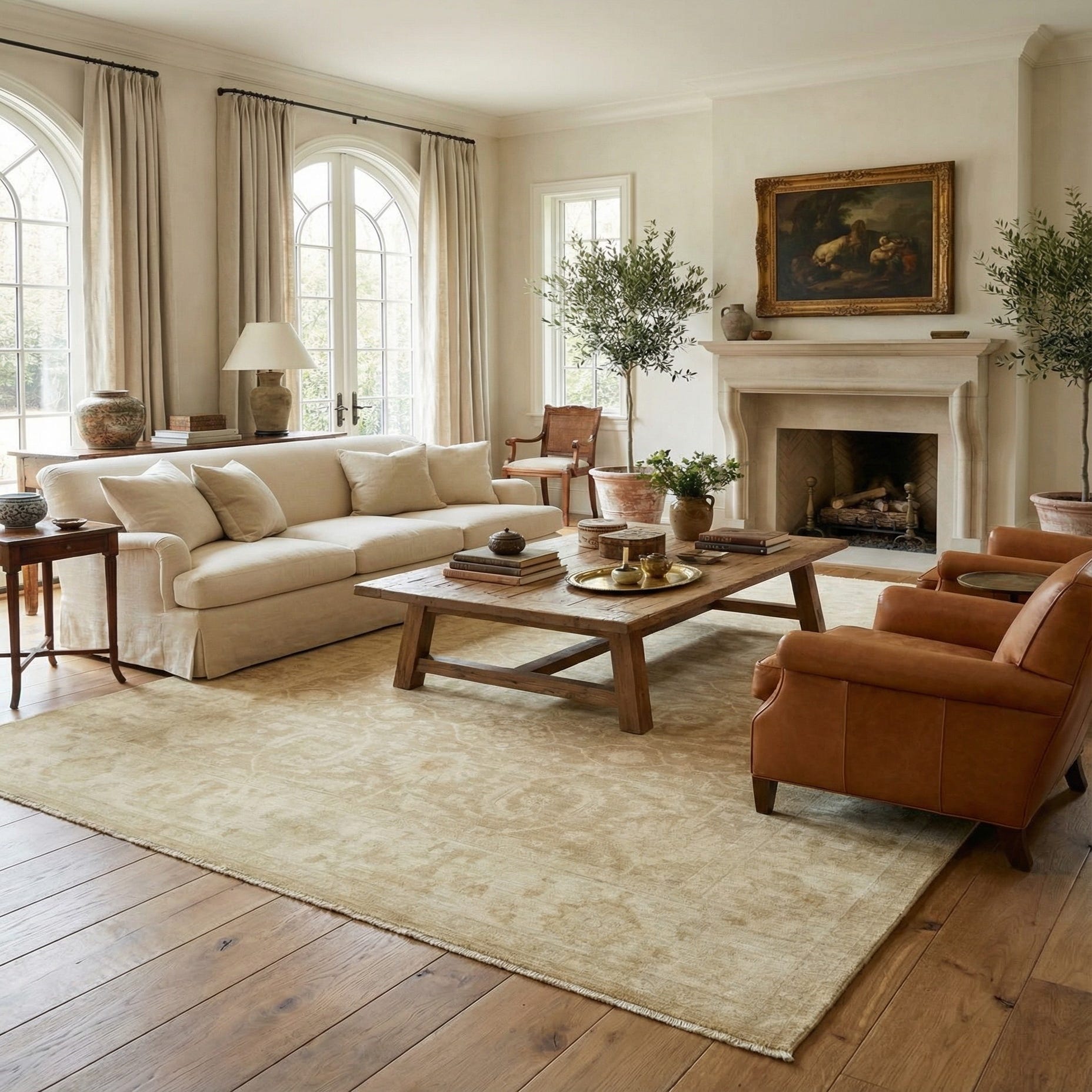 Primary color is Light Brown. Colors in this rug include: Light Brown, Ivory, Beige, Light Blue.