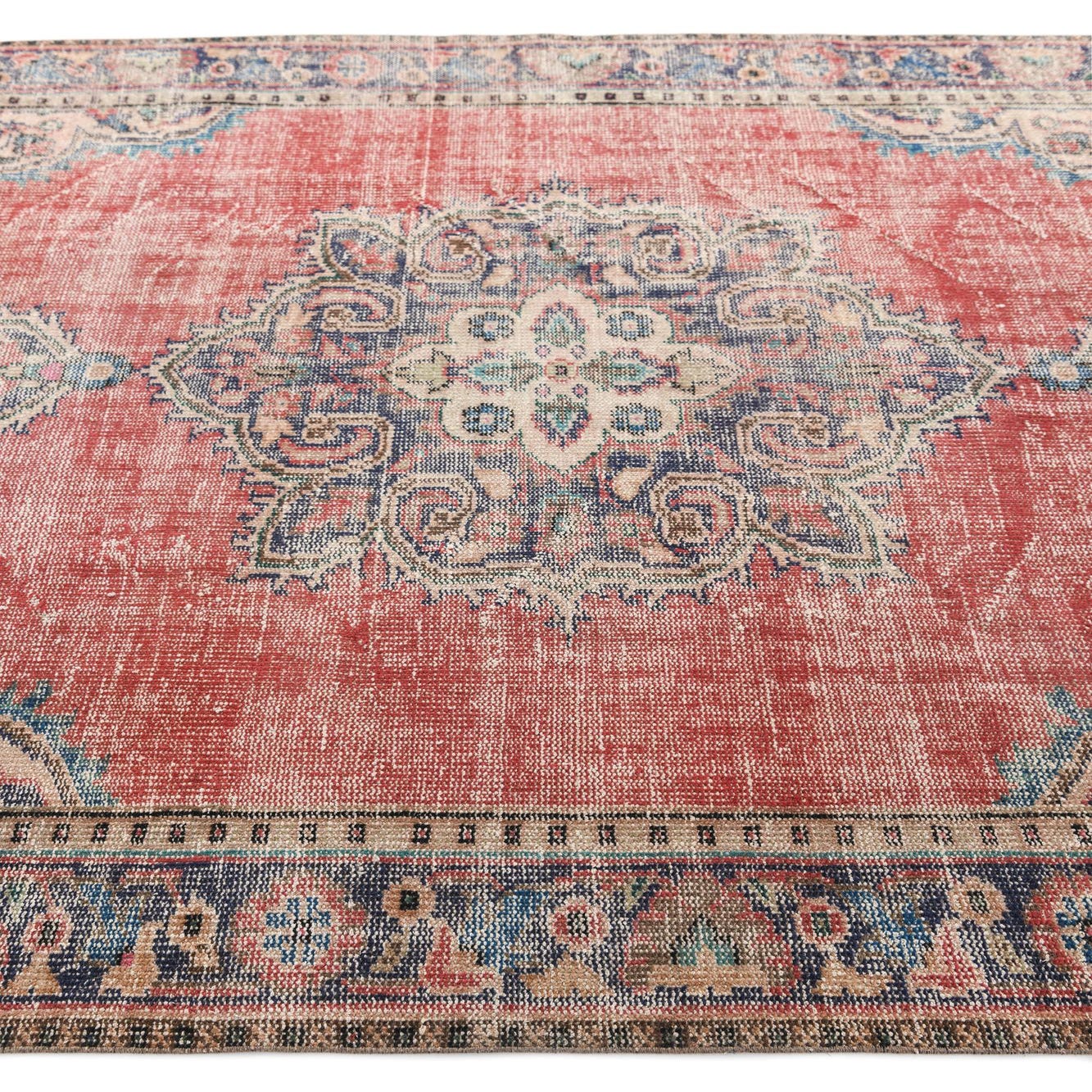 This Persian Ultra Vintage rug is an antique Persian Rug that has been washed, over-dyed, and then shaved down to a low pile. Look at the detail pictures to fully appreciate the uniqueness of this piece.