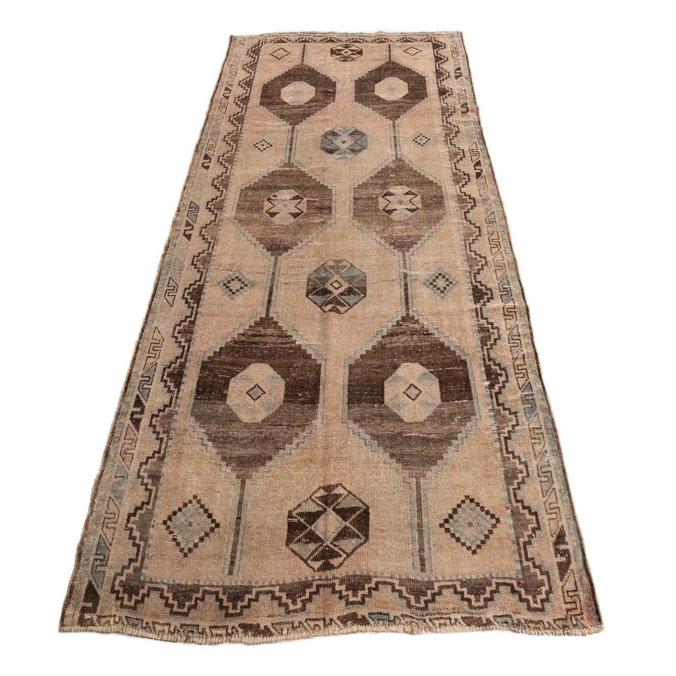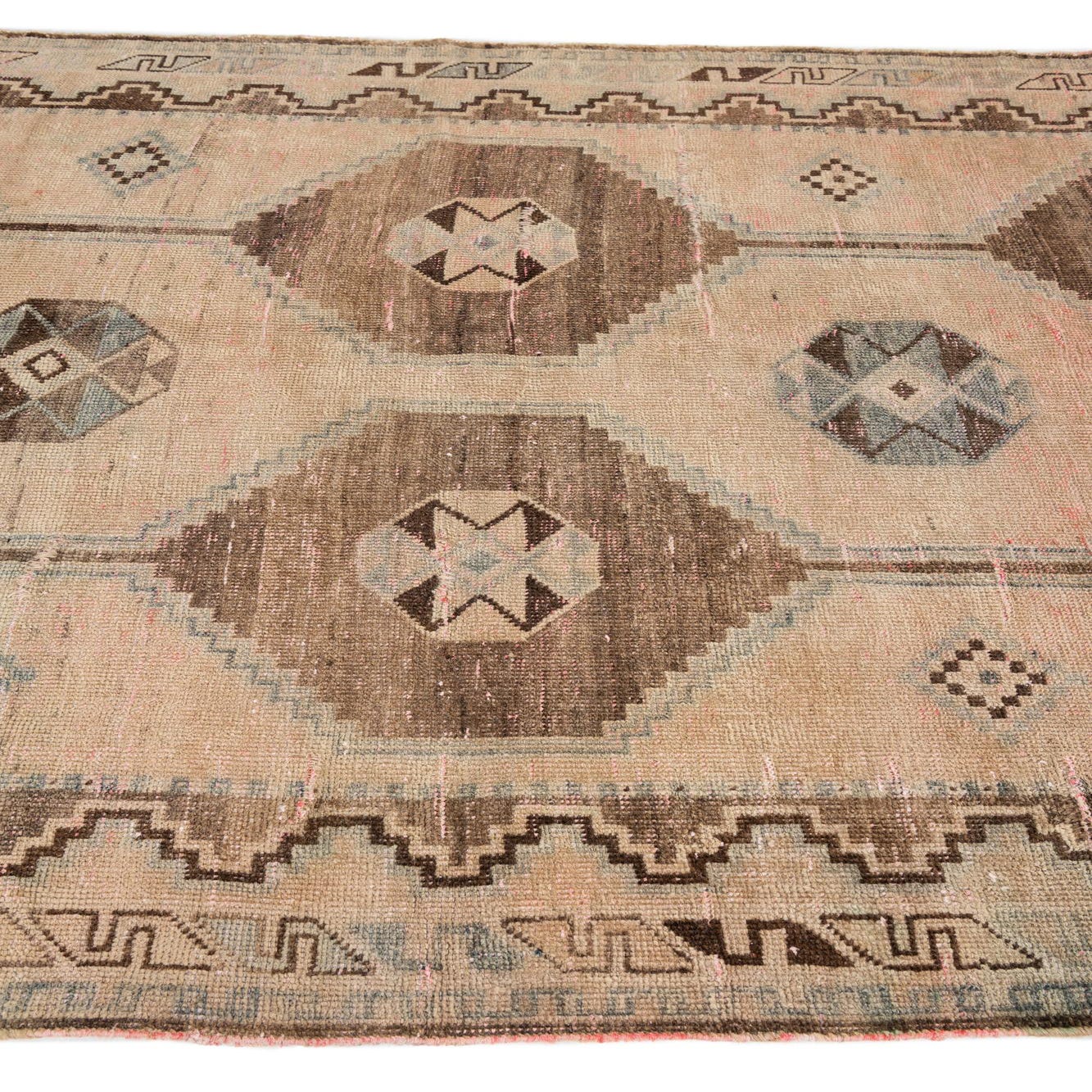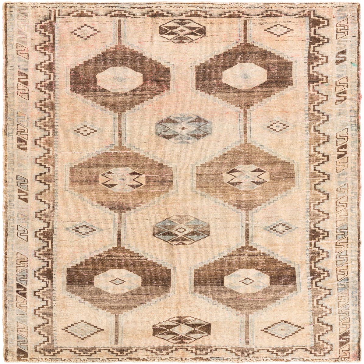 Primary color is Light Brown. Colors in this rug include: Light Brown, Brown, Navy Blue.