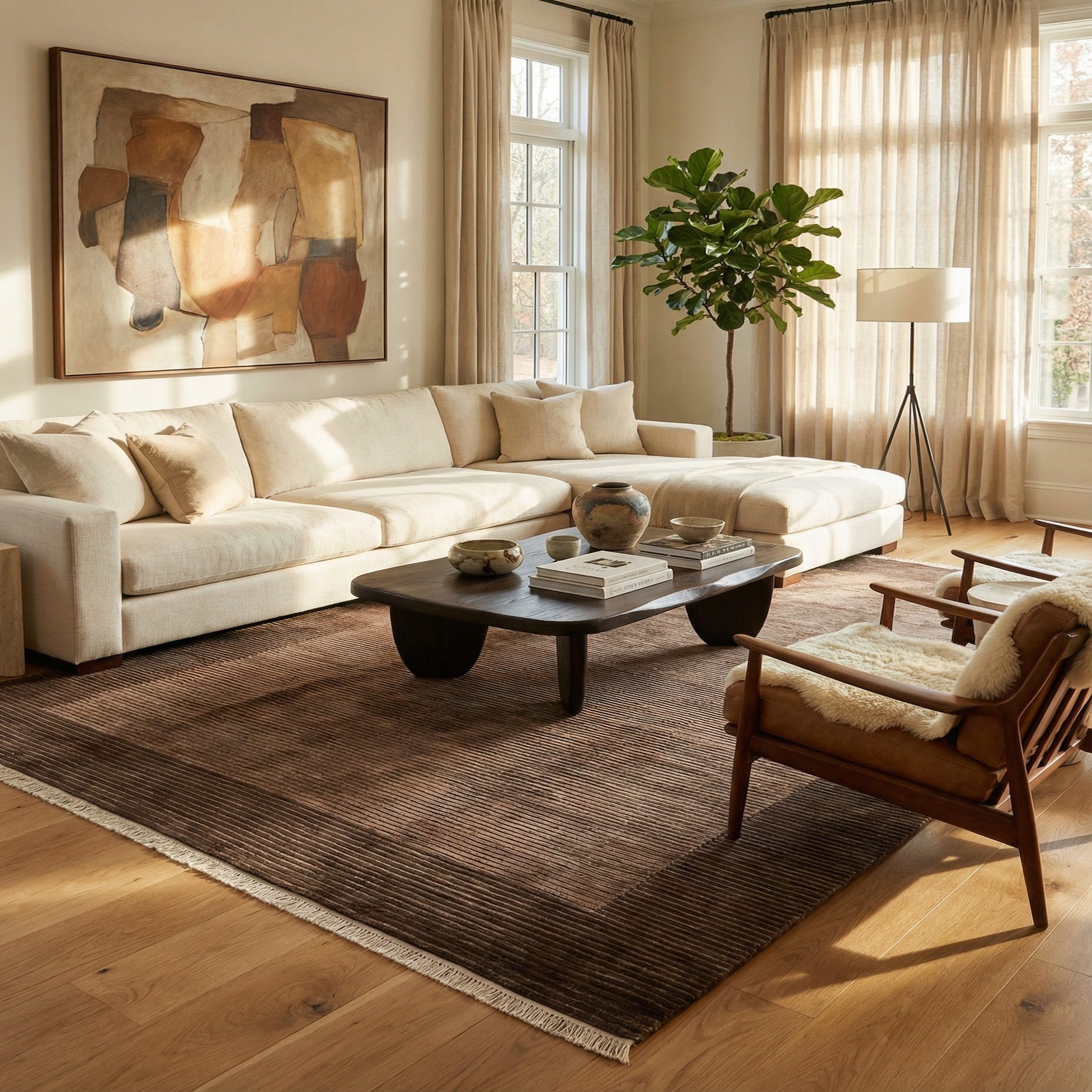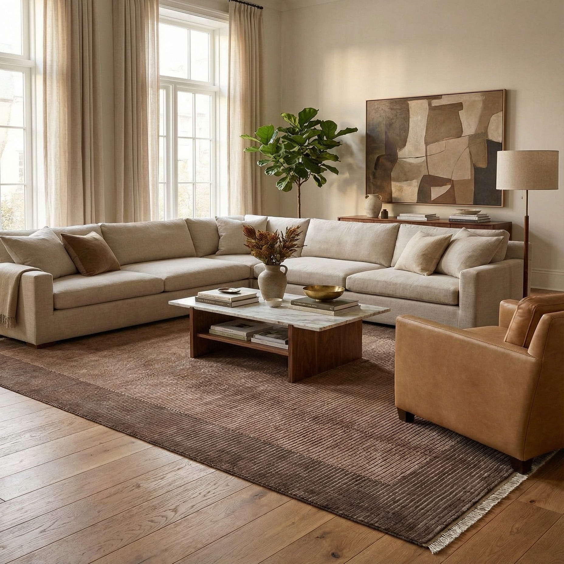Primary color is Light Brown. Colors in this rug include: Light Brown, Brown.