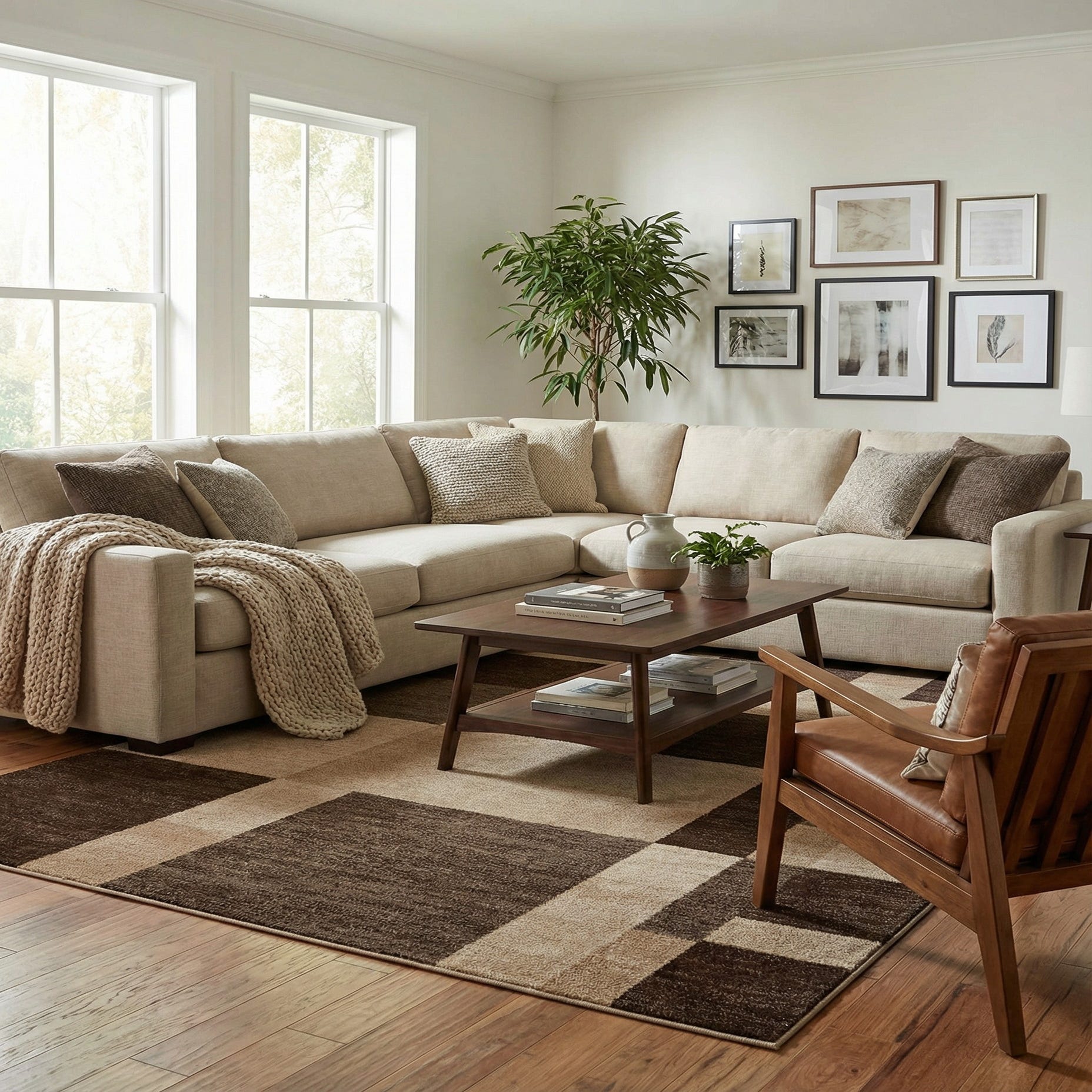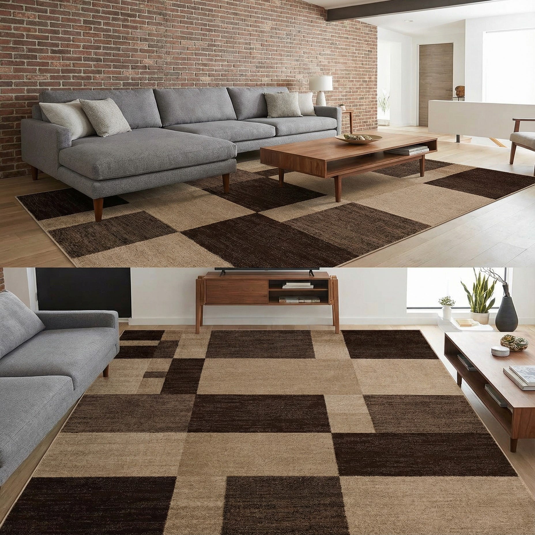 Primary color is Light Brown. Colors in this rug include: Light Brown, Beige.