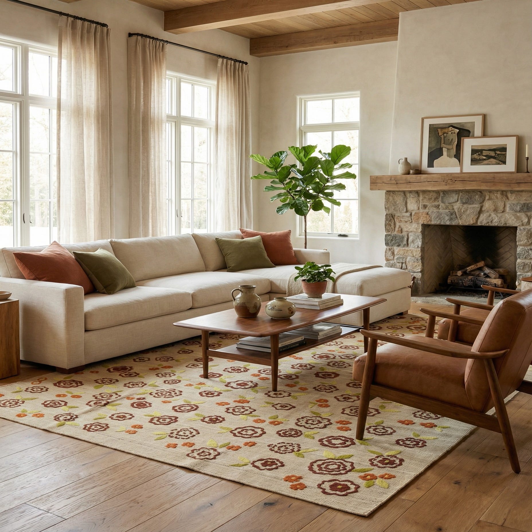 Primary color is Light Brown. Colors in this rug include: Light Brown, Brown, Orange, Olive.