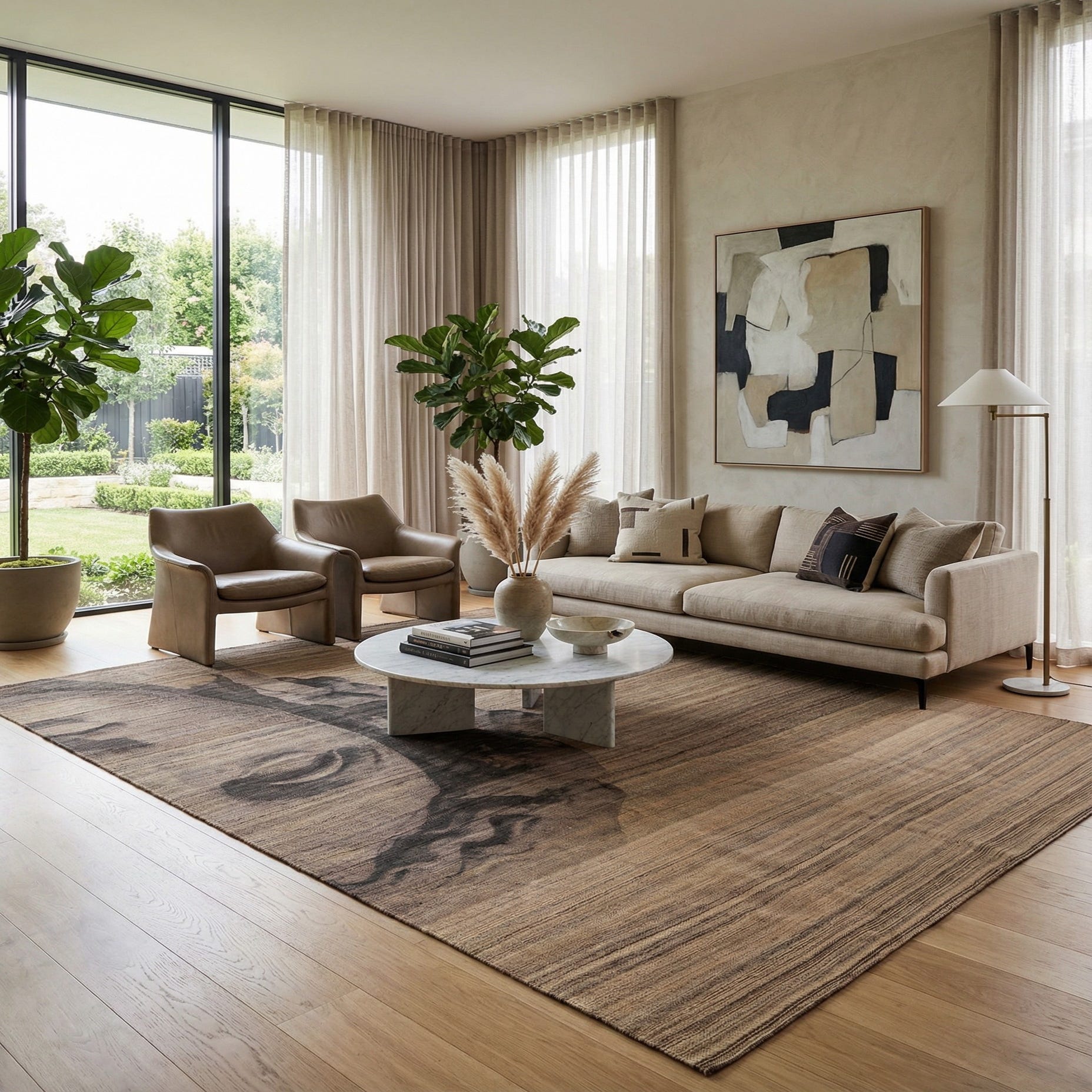 Primary color is Light Brown. Colors in this rug include: Light Brown, Beige, Brown.
