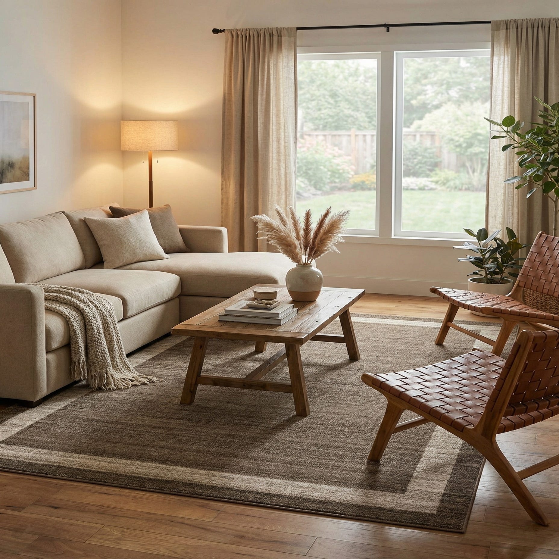 Primary color is Light Brown. Colors in this rug include: Light Brown, Ivory.