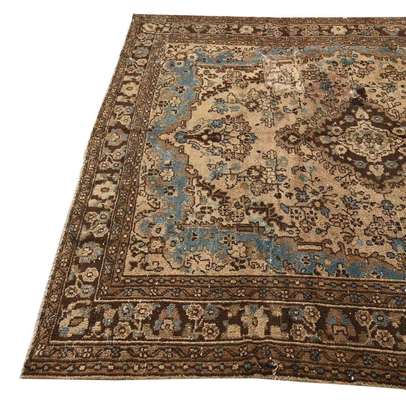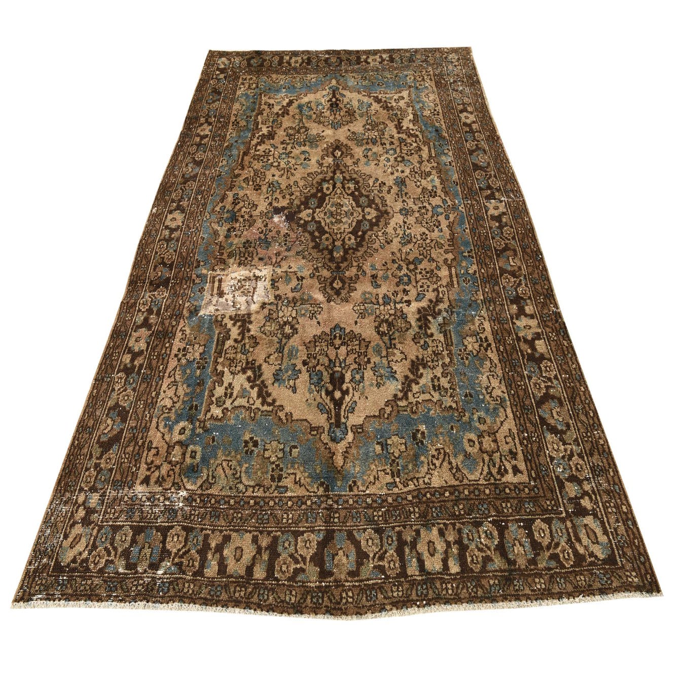 This Persian Ultra Vintage rug is an antique Persian Rug that has been washed, over-dyed, and then shaved down to a low pile. Look at the detail pictures to fully appreciate the uniqueness of this piece.