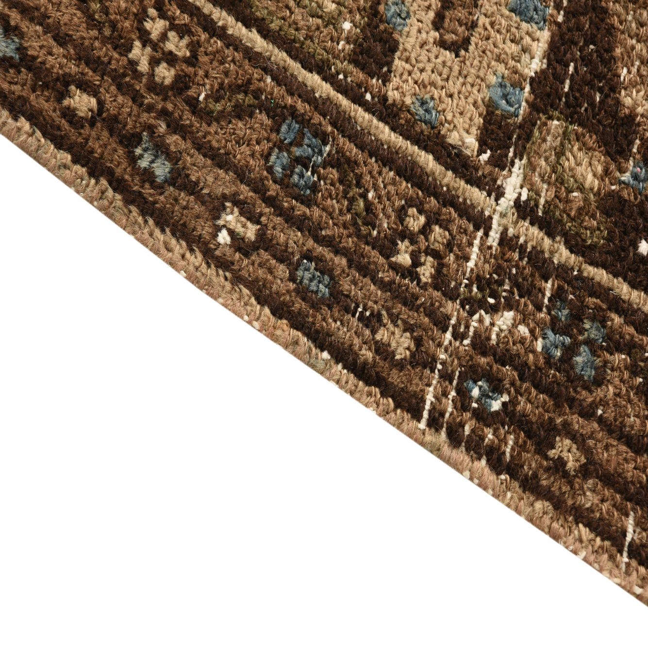 Primary color is Light Brown. Colors in this rug include: Light Brown, Brown, Navy Blue, Beige.
