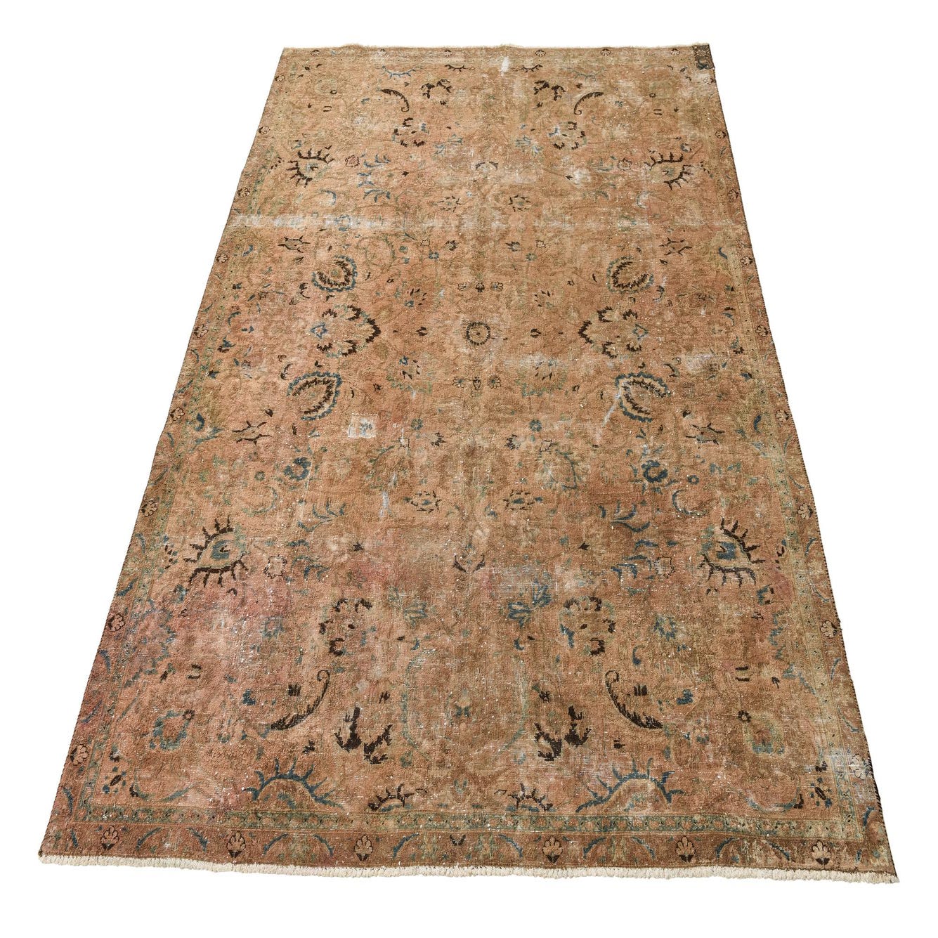 This Persian Ultra Vintage rug is an antique Persian Rug that has been washed, over-dyed, and then shaved down to a low pile. Look at the detail pictures to fully appreciate the uniqueness of this piece.