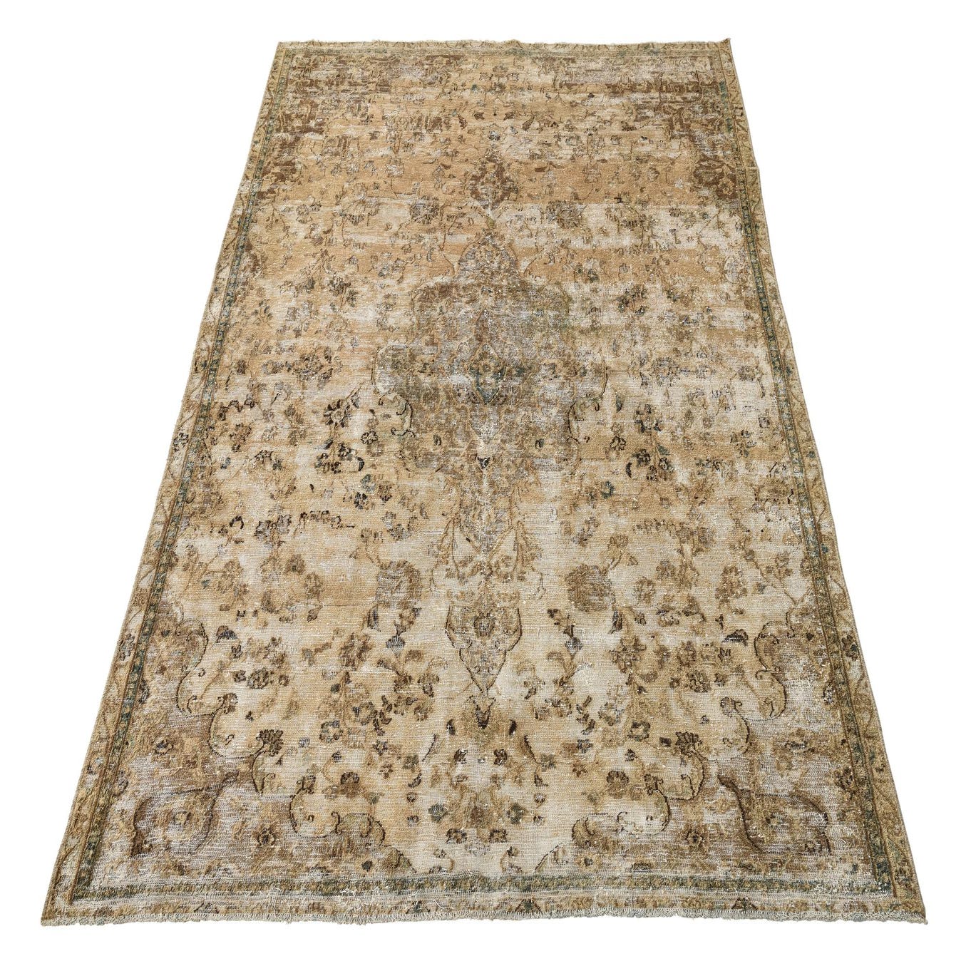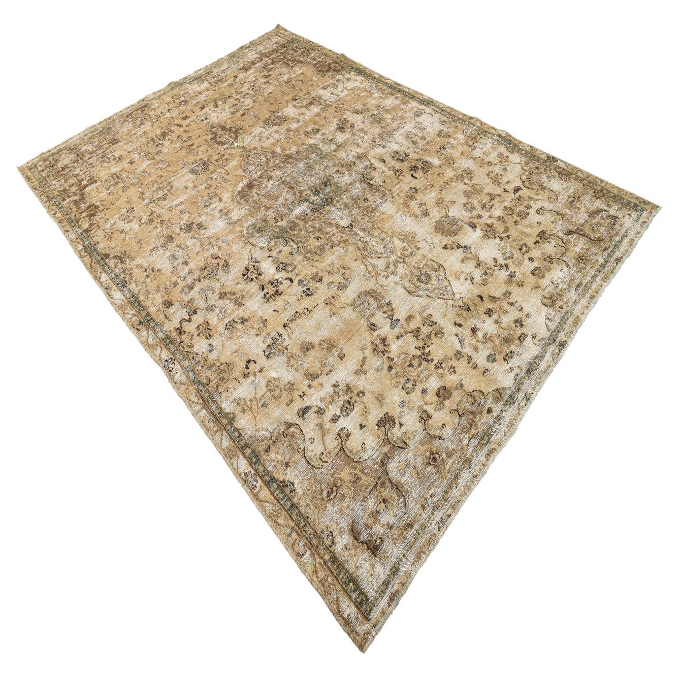 This Persian Ultra Vintage rug is an antique Persian Rug that has been washed, over-dyed, and then shaved down to a low pile. Look at the detail pictures to fully appreciate the uniqueness of this piece.