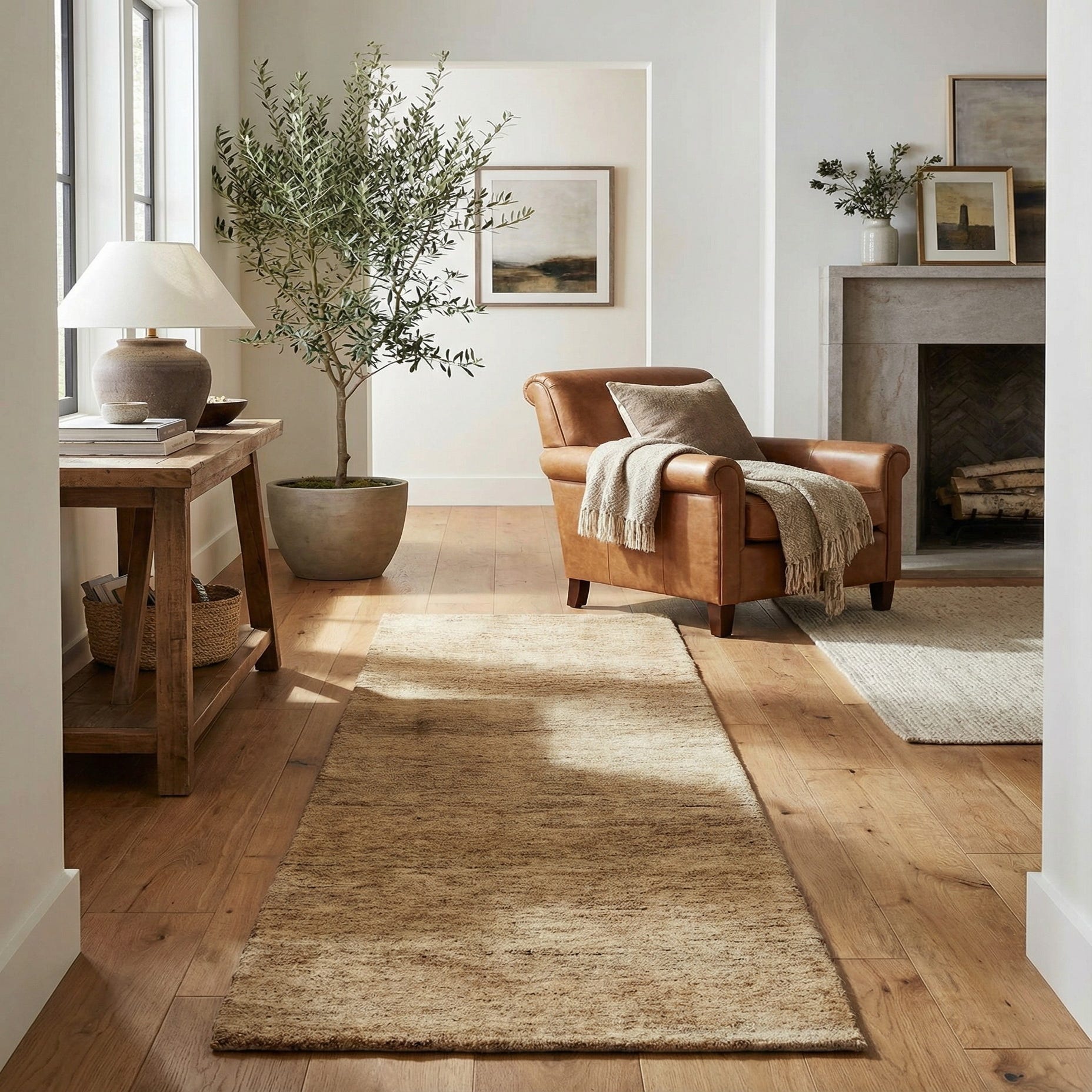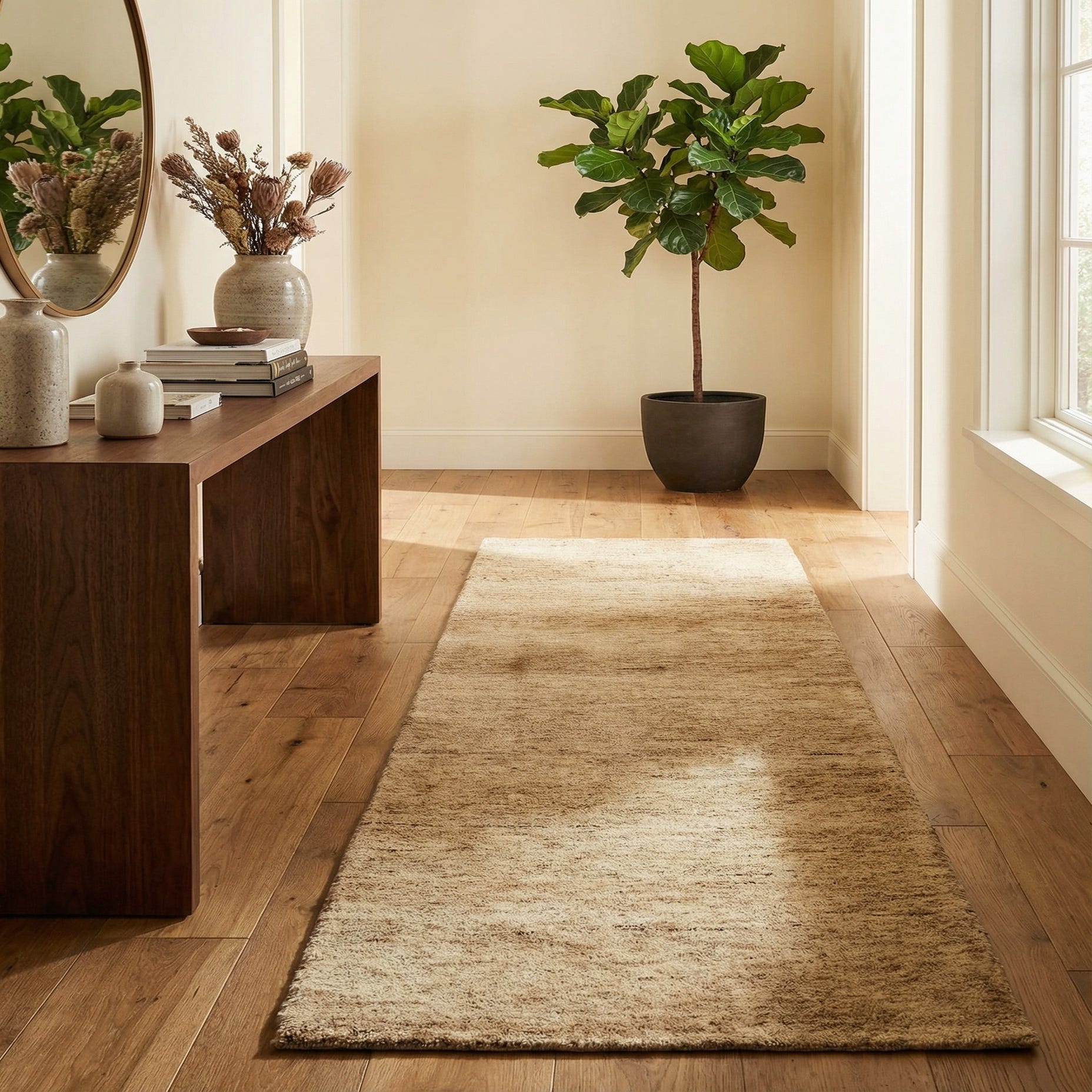 Primary color is Light Brown. Colors in this rug include: Light Brown, Brown, Beige.