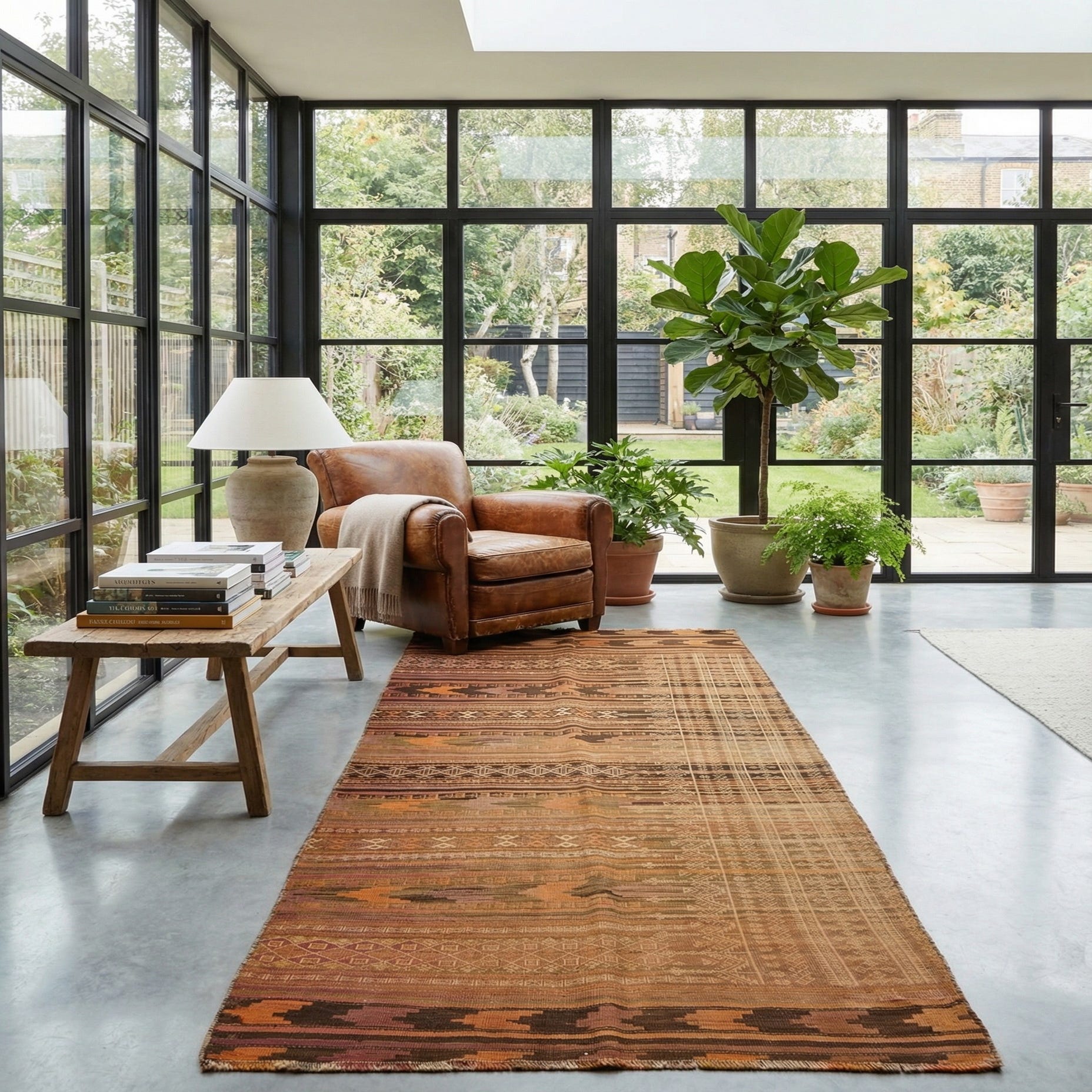 Detail image of 3' 8 x 8' 4  Hand Woven Kilim Fars Wool Runner Rug