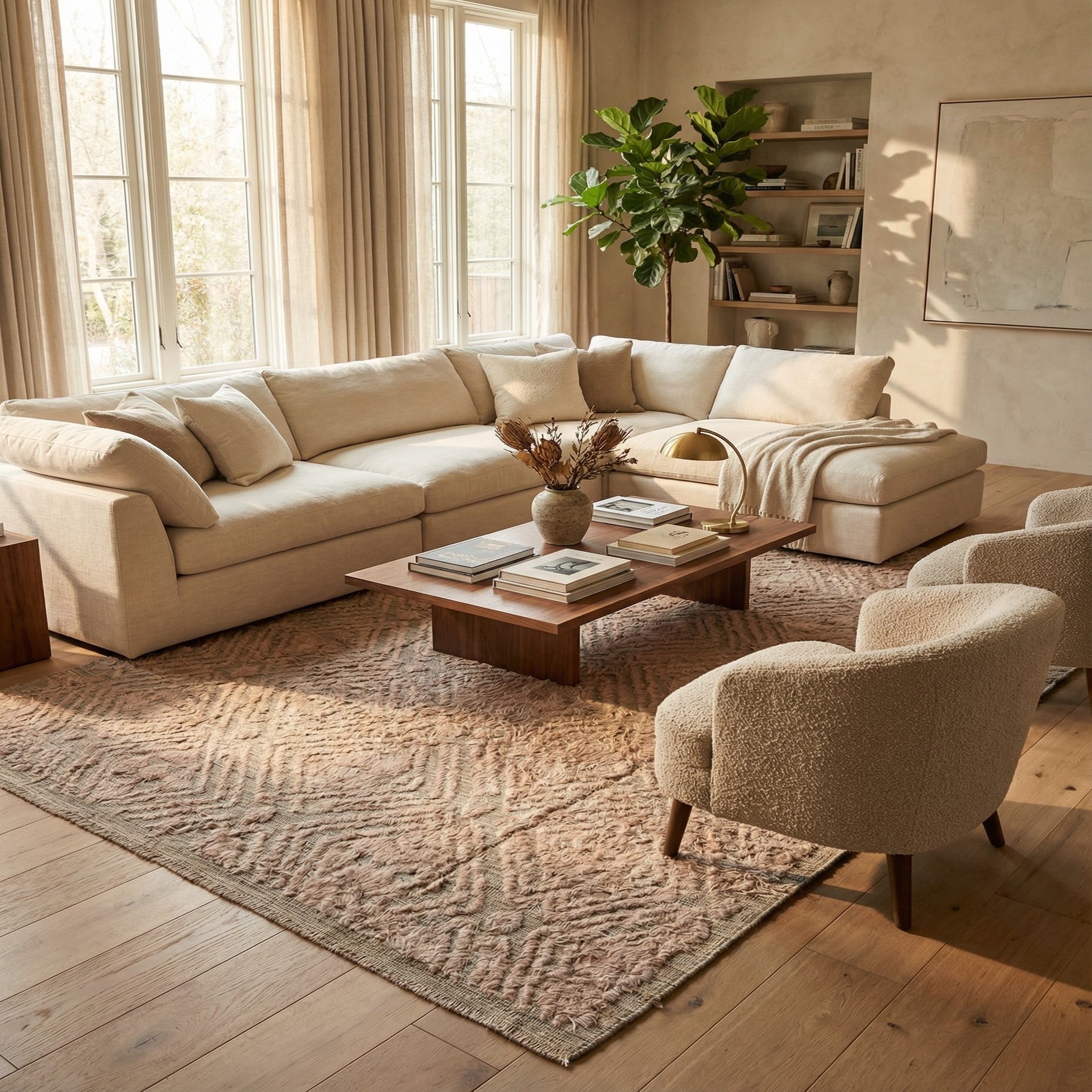 Primary color is Light Brown. Colors in this rug include: Light Brown, Beige, Brown.