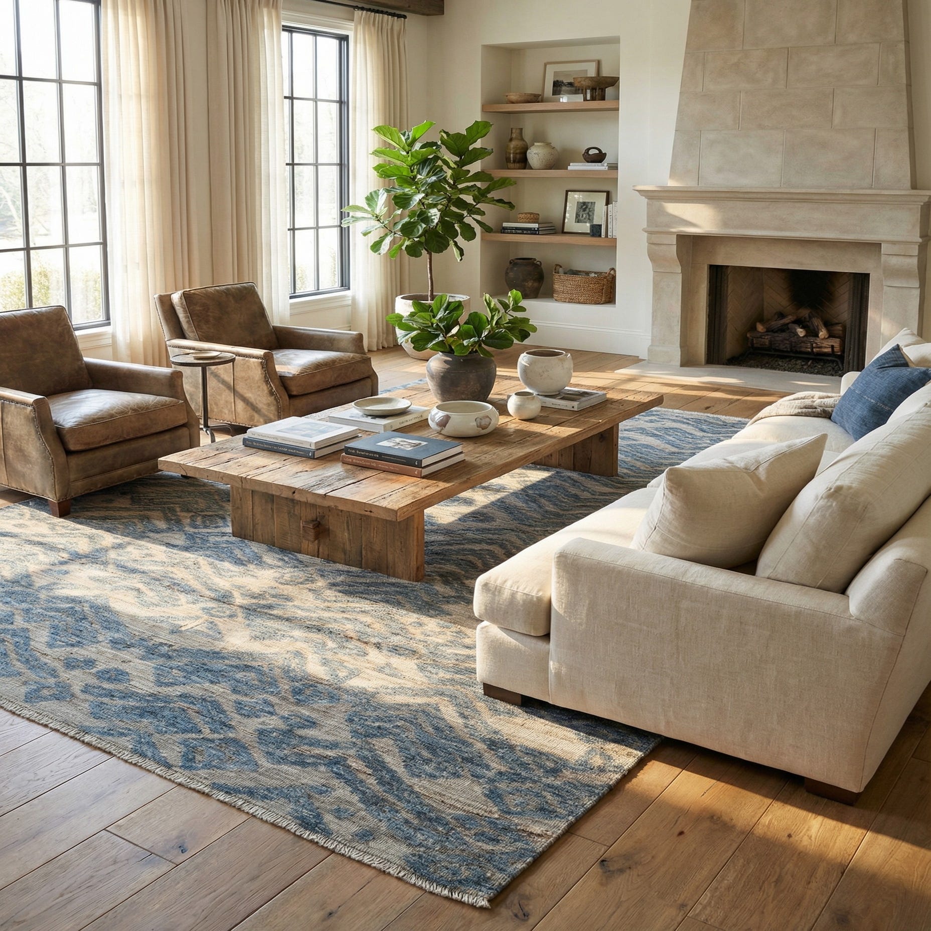 Primary color is Light Brown. Colors in this rug include: Light Brown, Blue.
