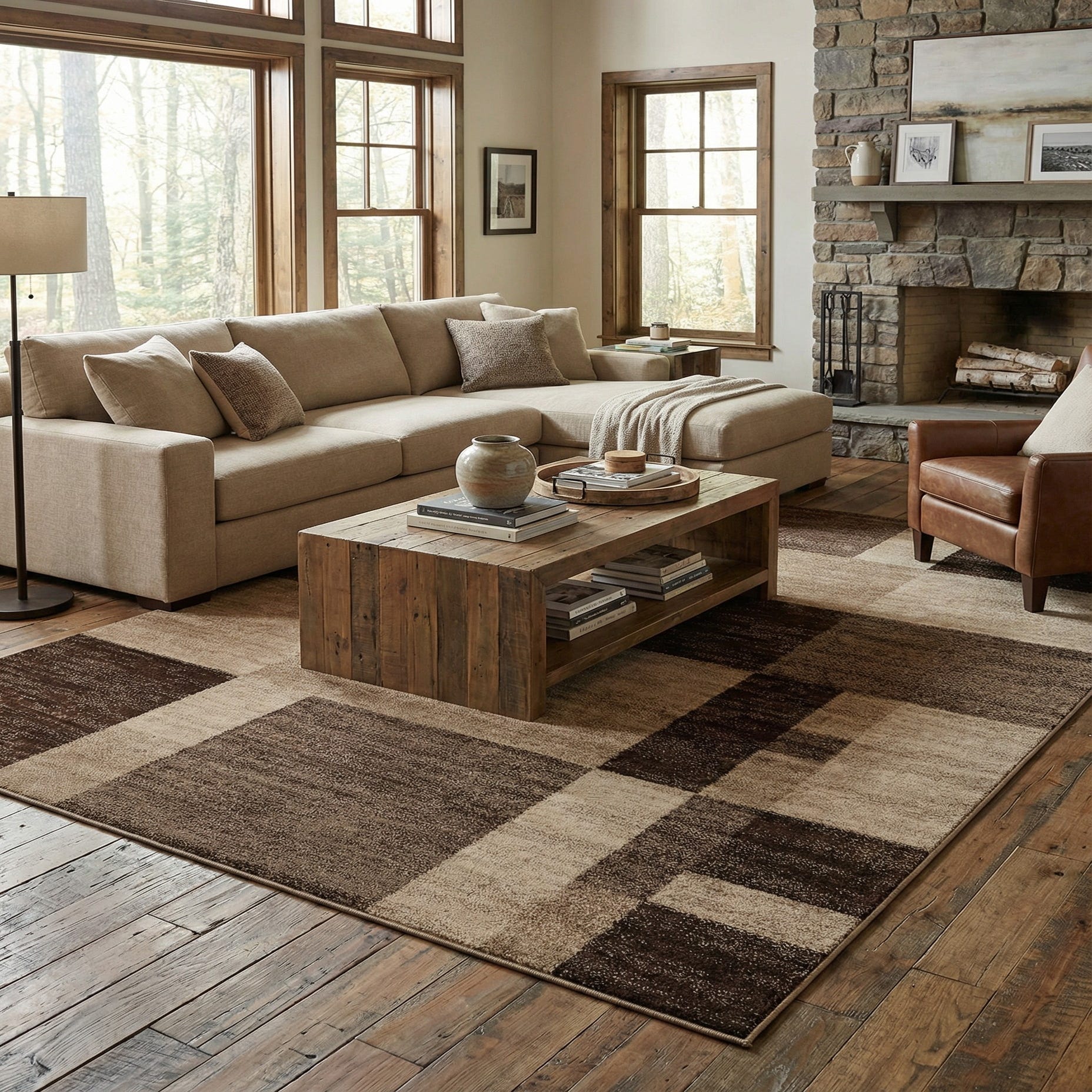 Primary color is Light Brown. Colors in this rug include: Light Brown, Beige.