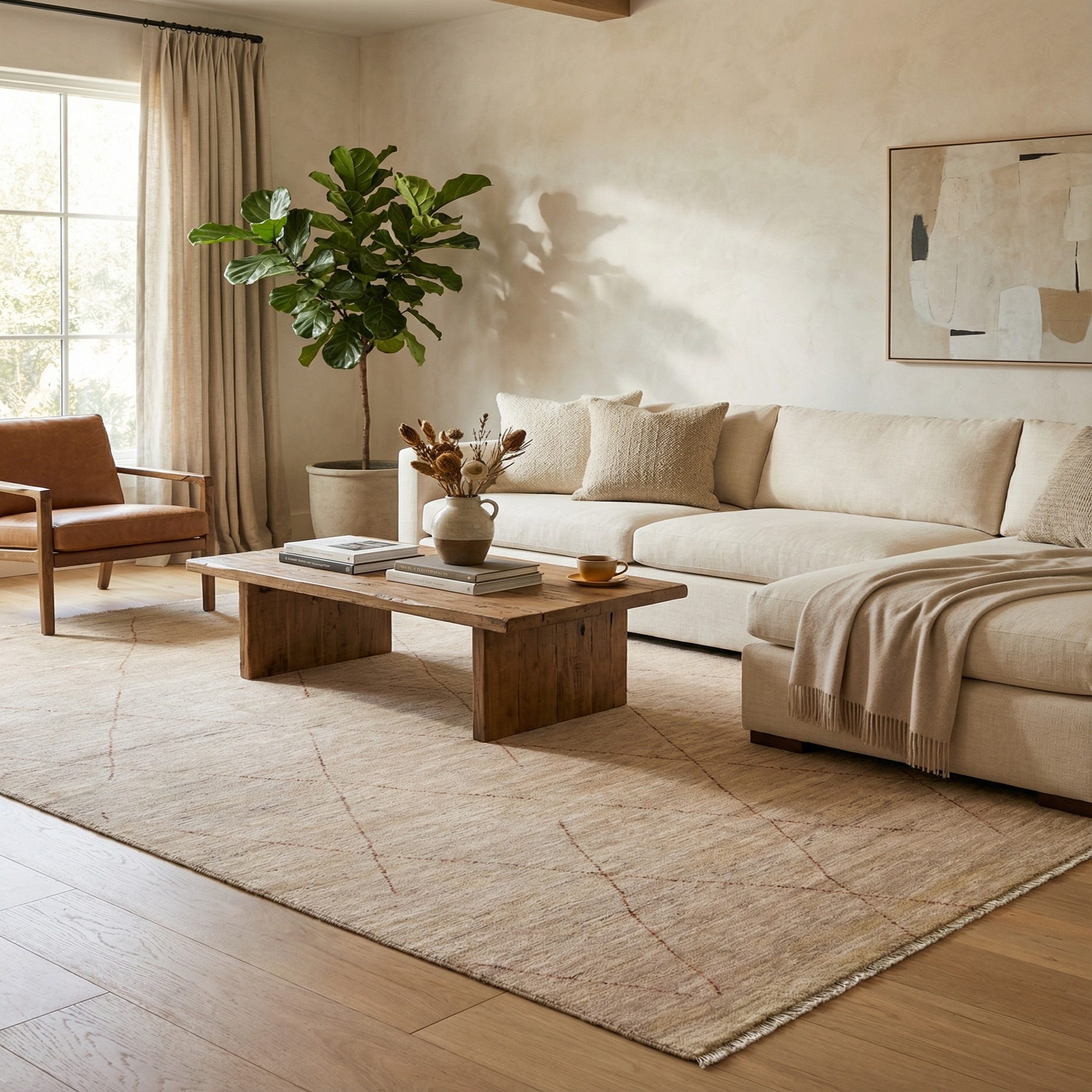 Primary color is Light Brown. Colors in this rug include: Light Brown, Brown, Beige.