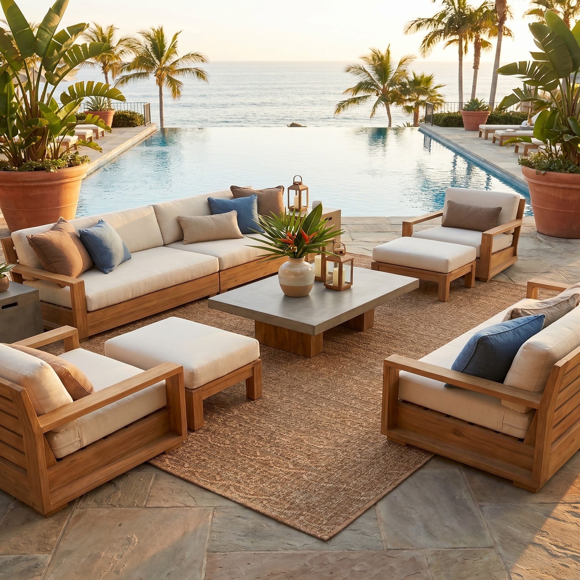 • Natural teak outdoor sectional