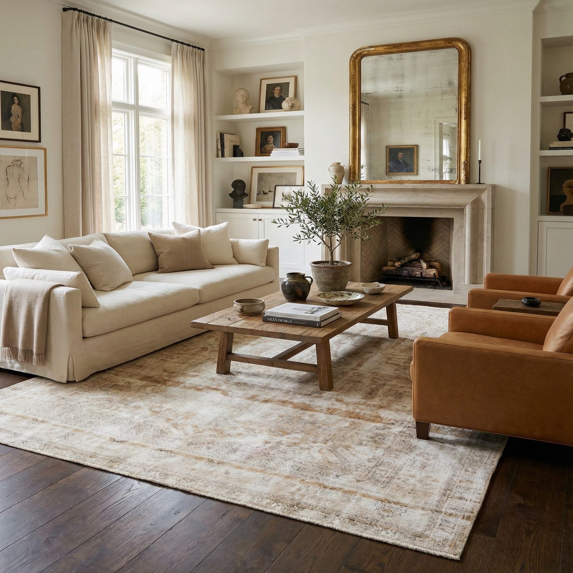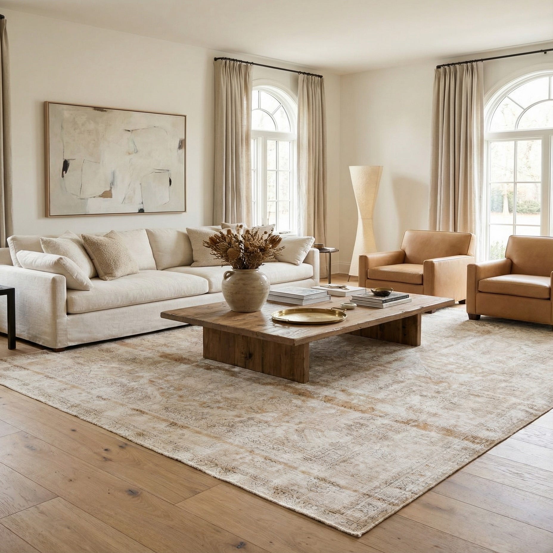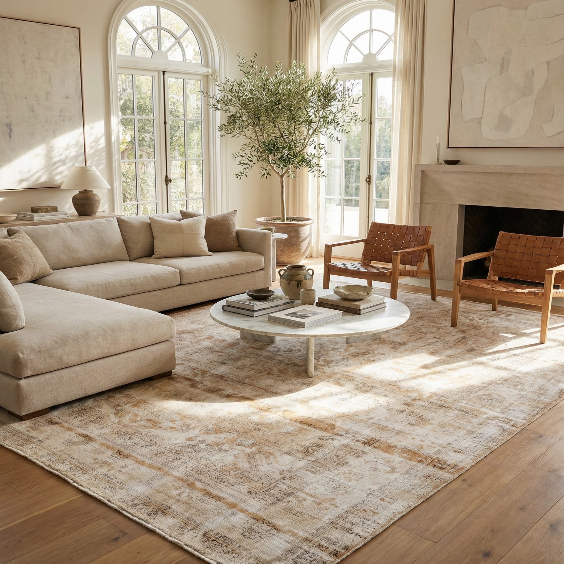Primary color is Light Brown. Colors in this rug include: Light Brown, Brown, Beige, Ivory.