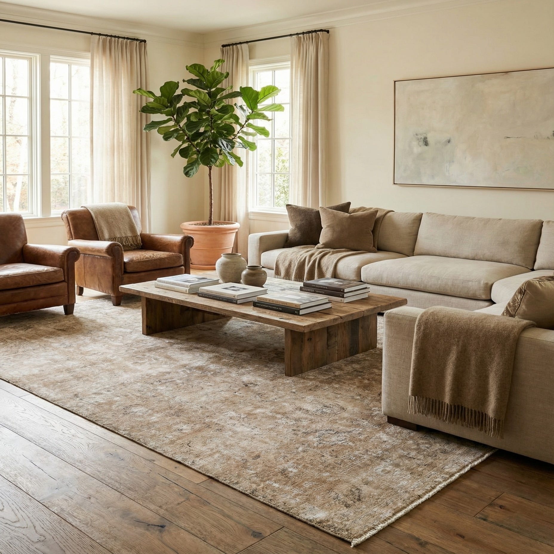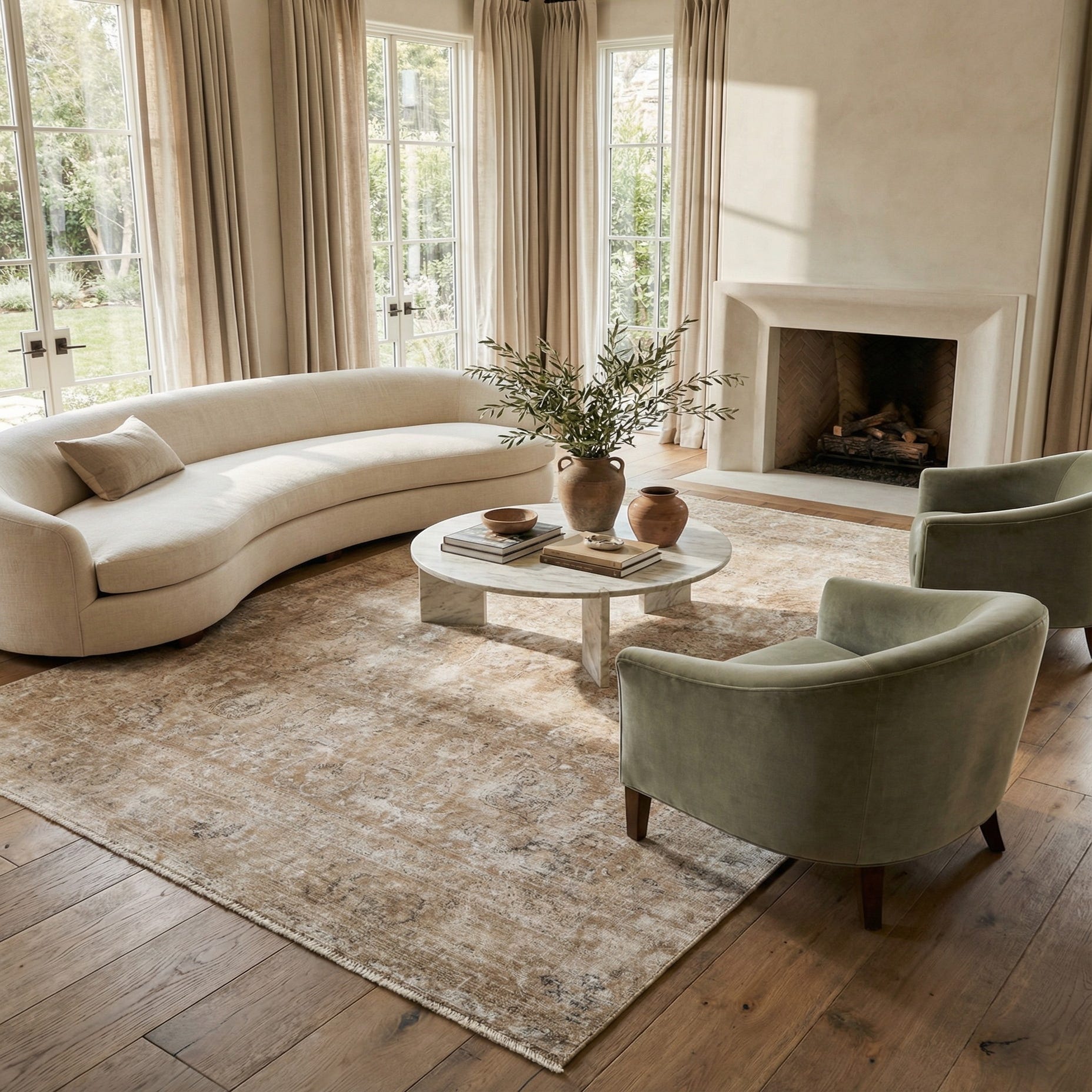 Primary color is Light Brown. Colors in this rug include: Light Brown, Brown, Ivory, Beige.