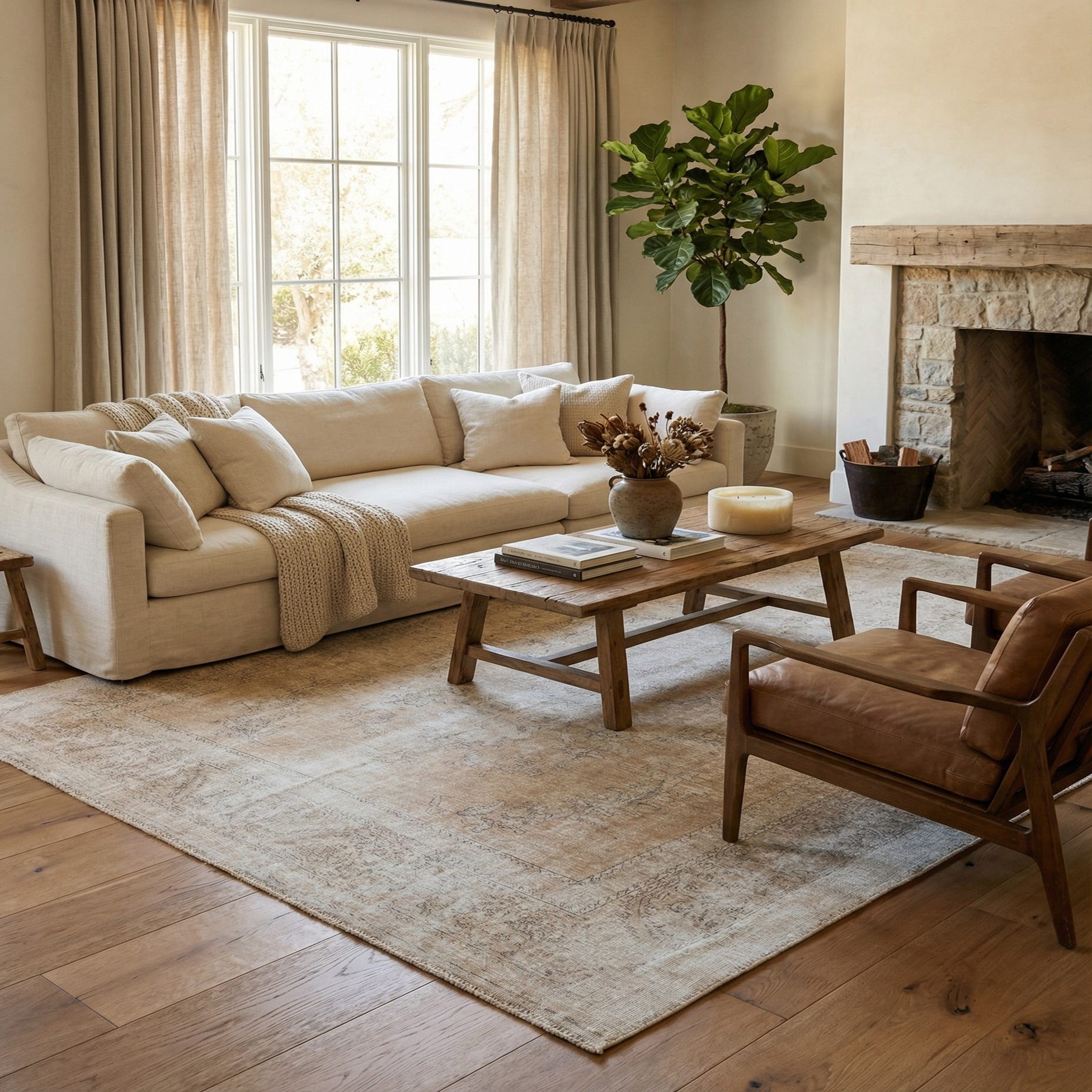 Primary color is Light Brown. Colors in this rug include: Light Brown, Brown, Ivory.