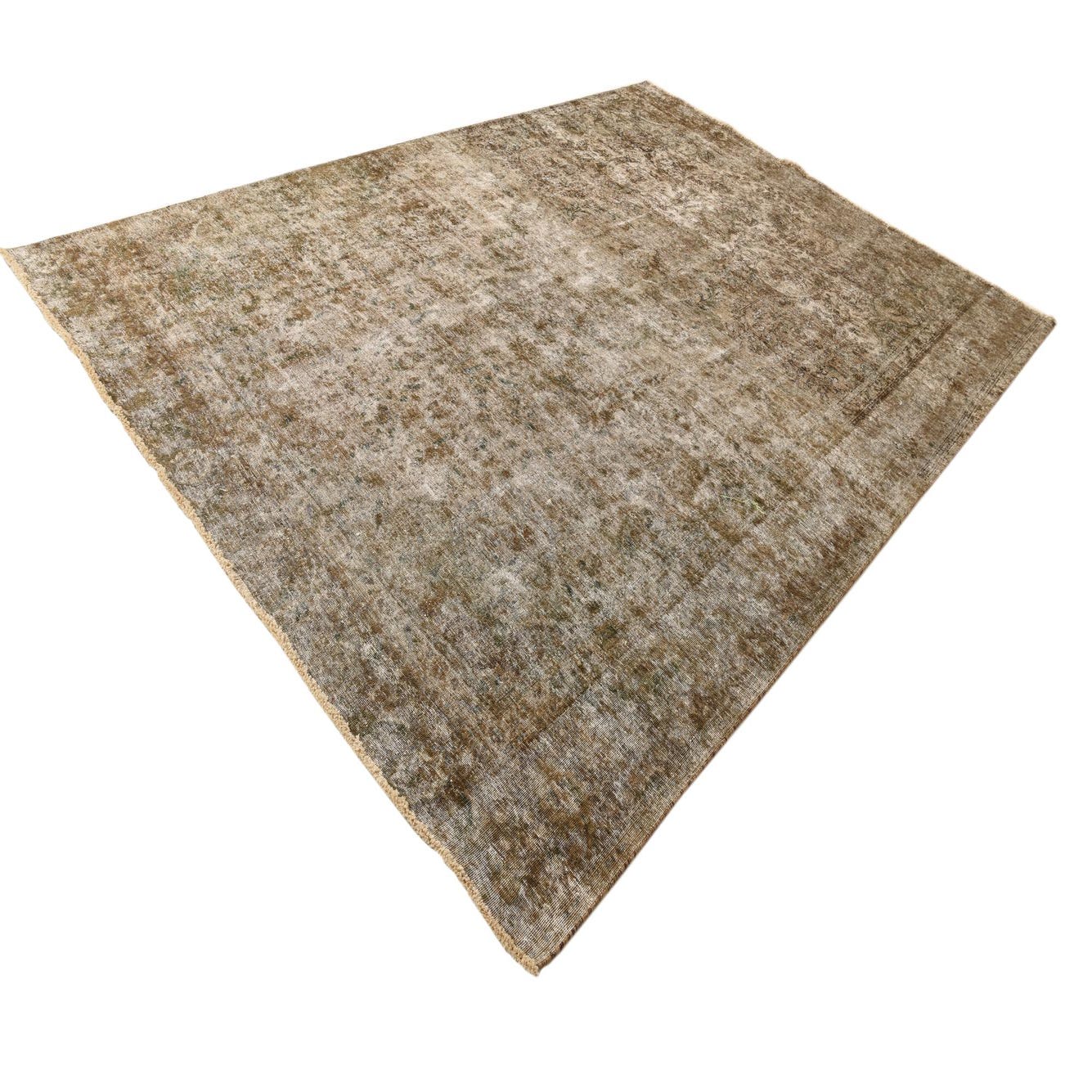 This Persian Ultra Vintage rug is an antique Persian Rug that has been washed, over-dyed, and then shaved down to a low pile. Look at the detail pictures to fully appreciate the uniqueness of this piece.