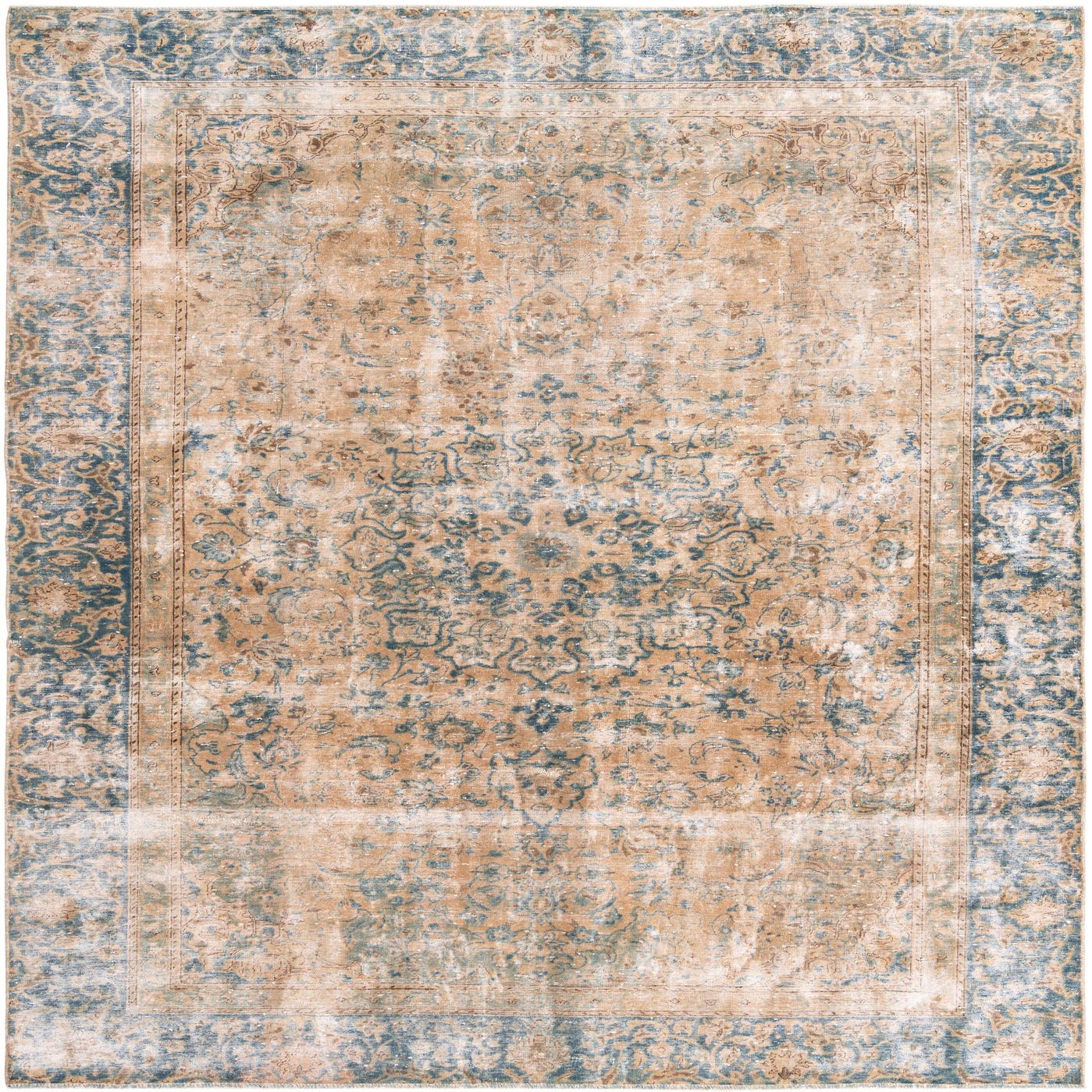 Primary color is Light Brown. Colors in this rug include: Light Brown, Brown, Ivory, Navy Blue.